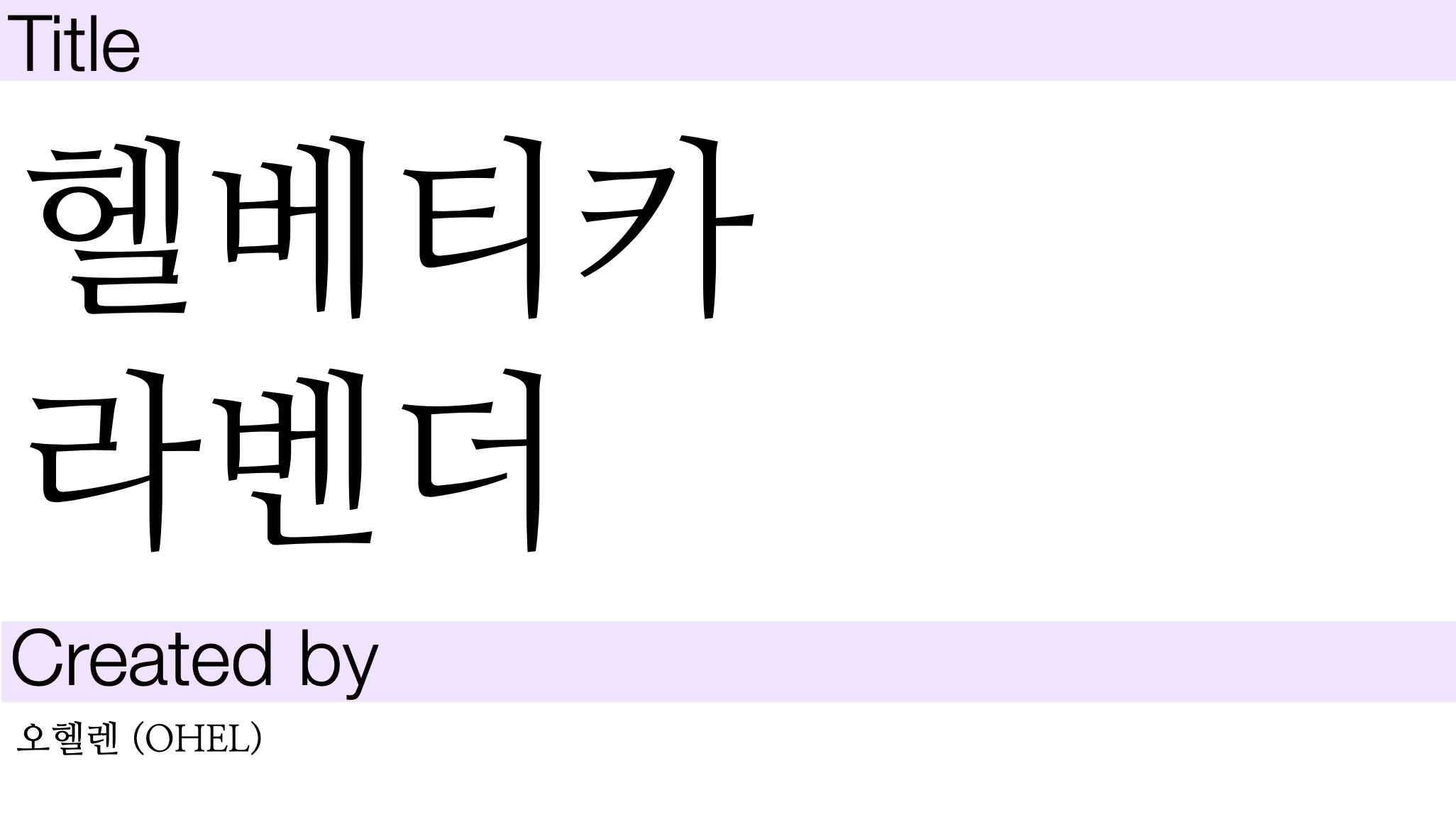 Title Created by 헬베티카 라벤더 오헬렌 (OHEL)
