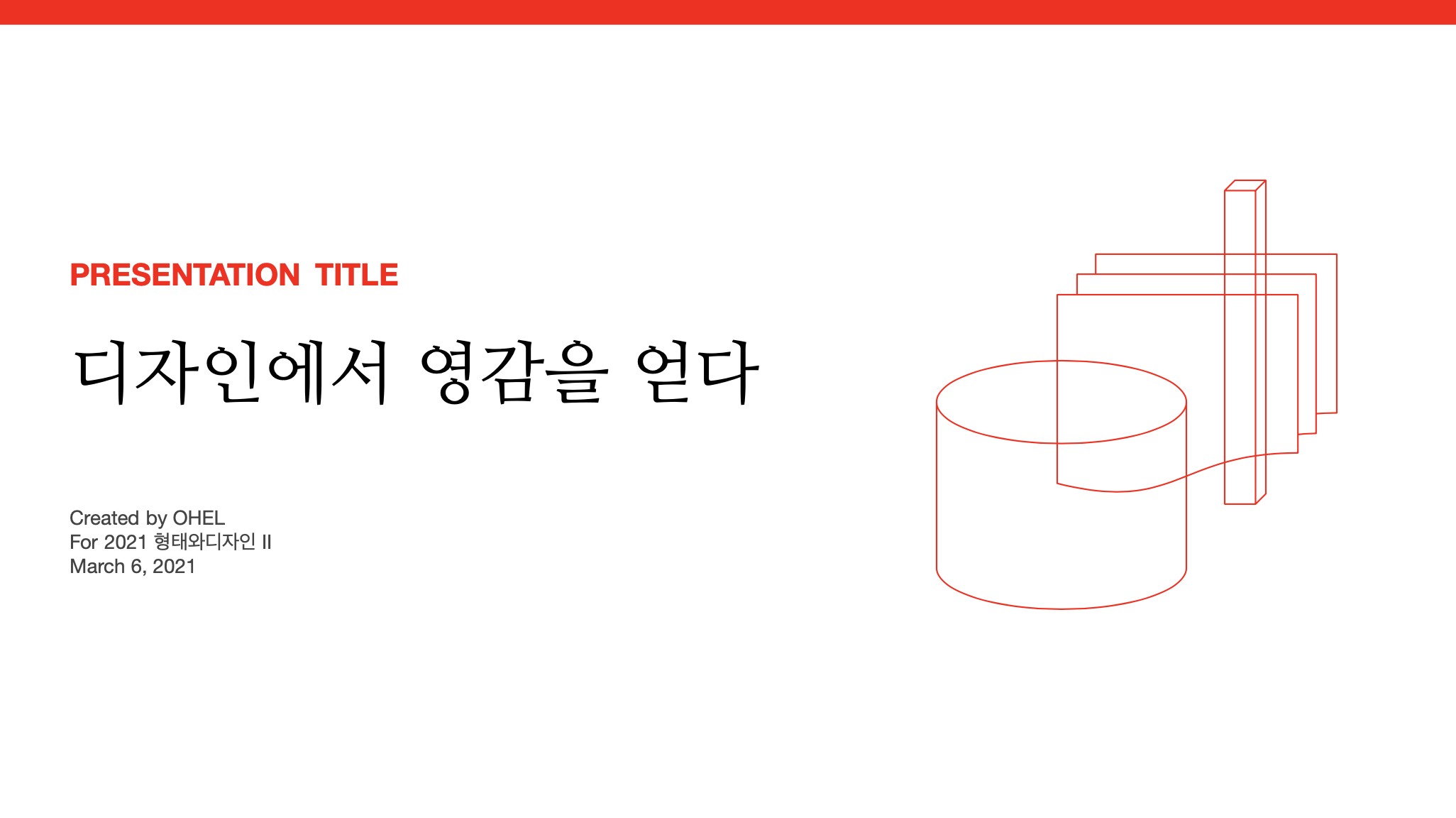 PRESENTATION TITLE Created by OHEL For 2021 형태와디자인 II March 6, 2021 디자인에서 영감을 얻다