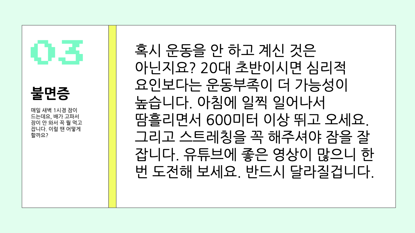 오늘은 지난 며칠 간 계속해 오던 디지털 우문현답, 질문과답변 (Q&A) 시리즈를 시원한 쿨민트 색으로 마무리 해 보려고 합니다. 제가 정말 좋아했던, 애착이 있는 디자인들이라 떠나보내기 아쉬울 정도네요. 이번에는 민트를 노랑계열과 매치하여 아주아주 시원한 느낌을 줍니다. 여름에 사용하시기 좋은 템플릿이에요. 약간 일렉트릭한 느낌이 강한 DJ를 연상시키기도 해서, 여름 음악/캠프 행사 알림에 사용하셔도 좋을 것 같습니다. (지금은 코로나지만... 그럴 날이 오겠죠?)