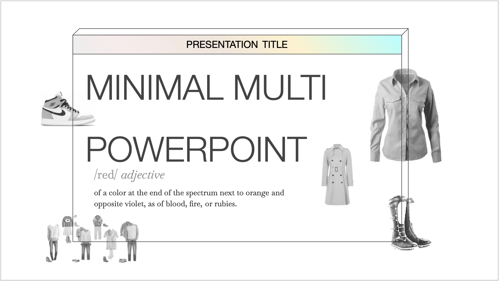 MINIMAL MULTI POWERPOINT PRESENTATION TITLE /red/ adjective of a color at the end of the spectrum next to orange and opposite violet, as of blood, fire, or rubies.