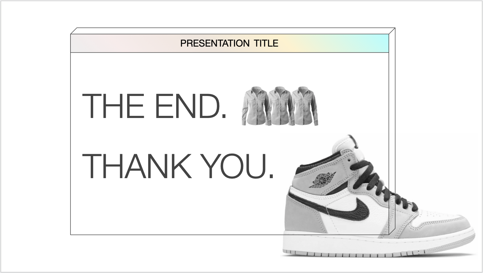 제목에는 인터넷에서 찾은 갖가지 옷과 신발 관련 이미지들을 콜라주해서 넣어 주었습니다. 이렇게 해 주면, 평면적인 파워포인트에 입체적인 느낌을 더해줄 수 있고, 호기심을 자극할 수 있습니다. 이미지는 여러가지 색을 쓰기보다는 하나의 필터 (그레이스케일이나 빈티지 브라운 등)로 통일해서 써 주시는 게 좋은데, 구글 슬라이드에서 이미지/사진에 색깔 필터 넣는 방법은 여기를 참조해 주세요.