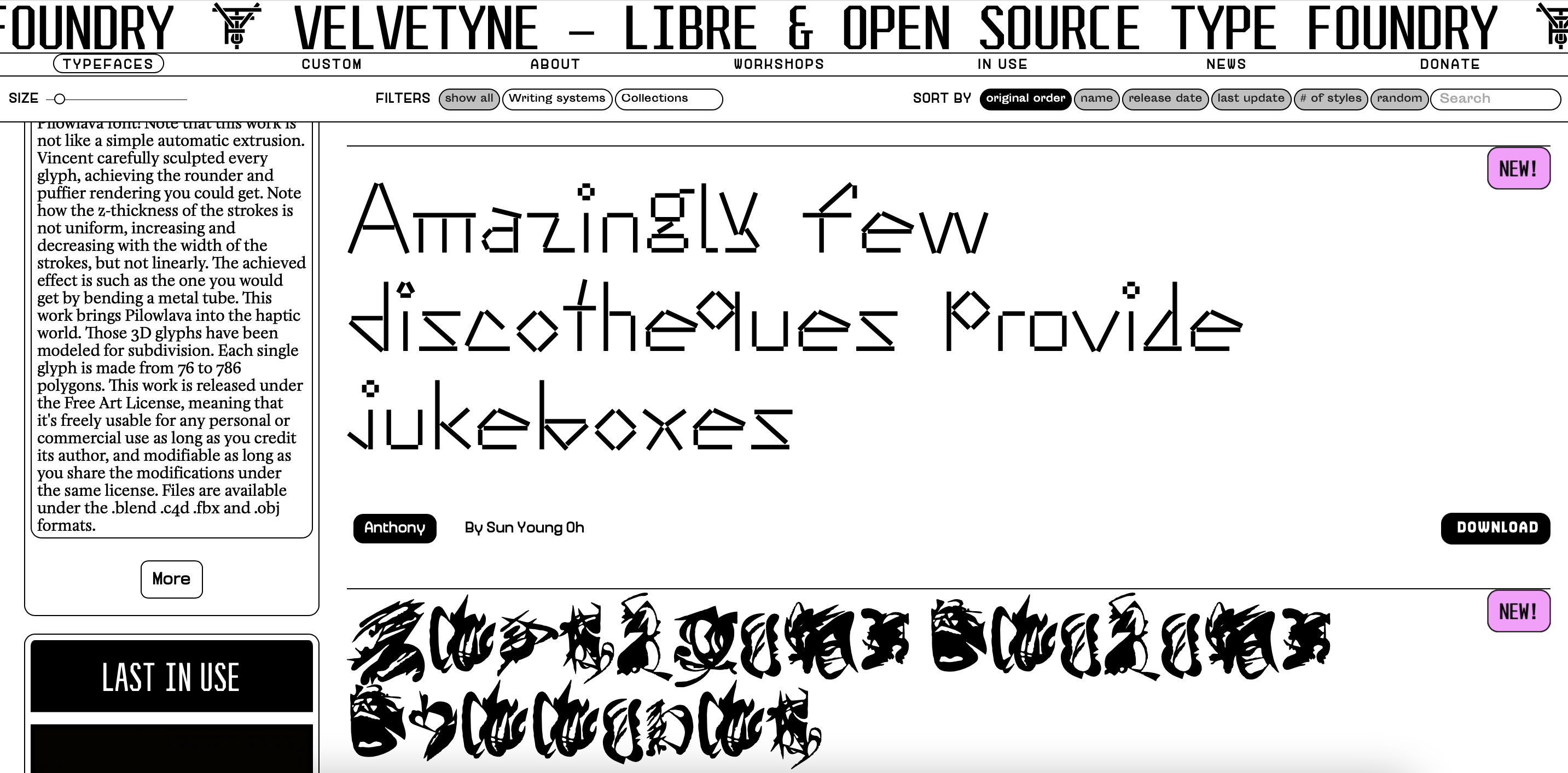 오픈소스 무료폰트 플랫폼, Velvetyne