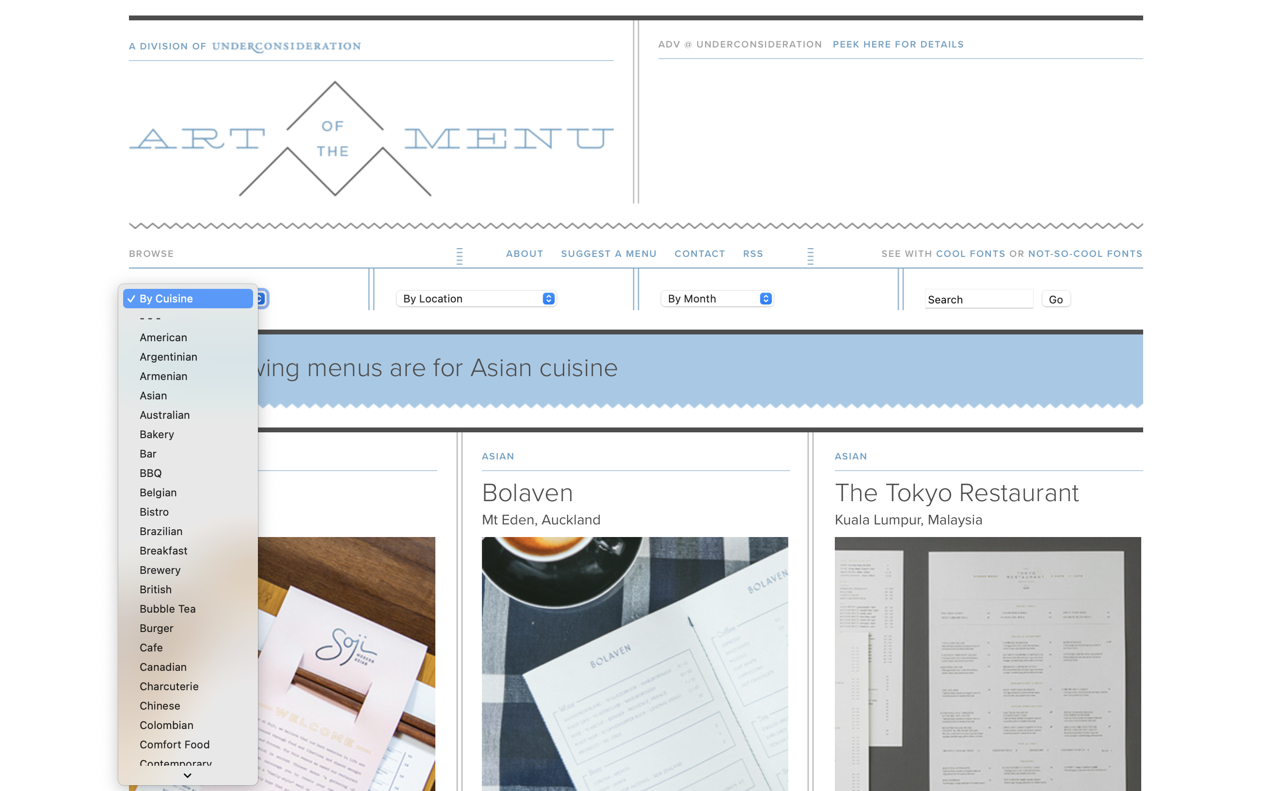 메뉴디자인 / 브랜딩 참고 사이트, 아트 오브 더 메뉴 (the Art of the Menu)