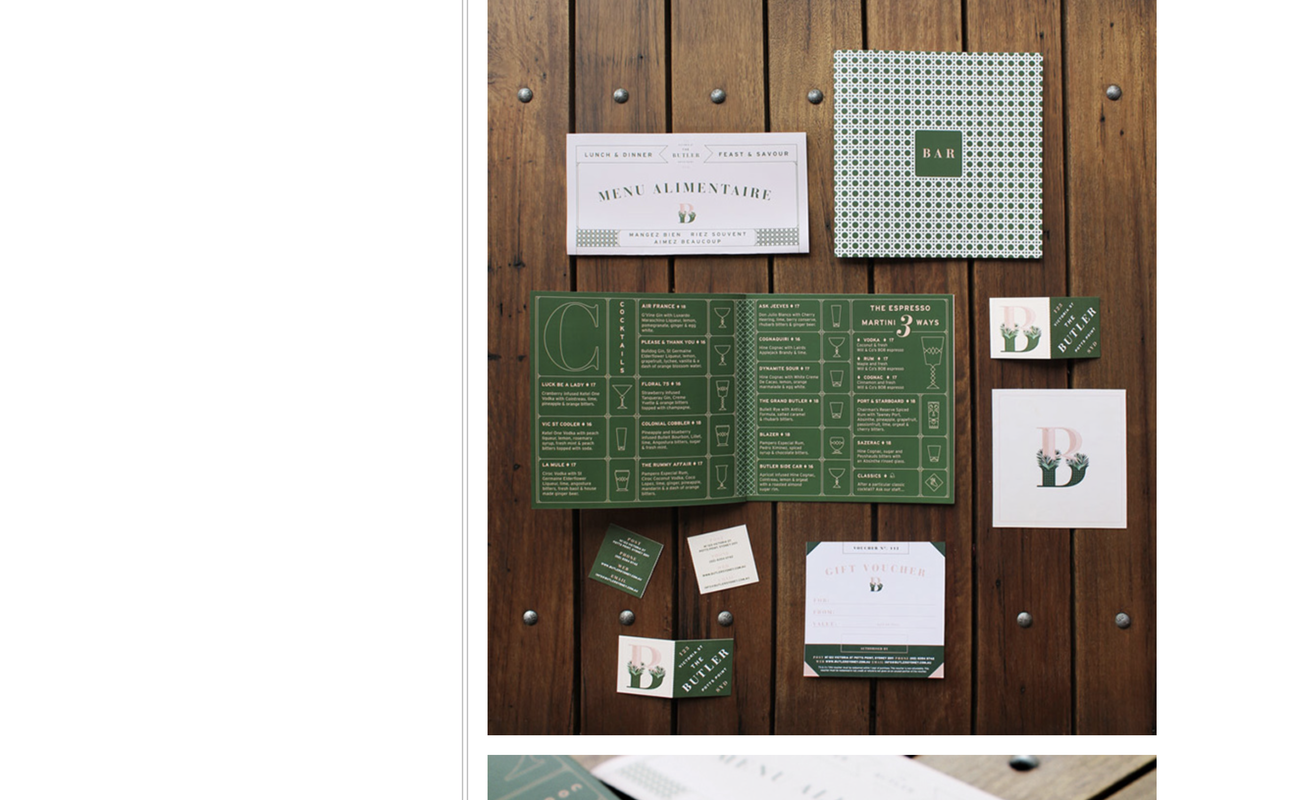 아래는 호주 시드니에 있는 프렌치 레스토랑의 메뉴라고 합니다. 식민지 시대 프랑스 감성을 담아서 만들었다고 하는데요, 핑크와 다크 그린의 조화가 정말 잘 어울리고, 전체적으로 색과 폰트의 사용이 일관성 있어서 정말 잘 된 케이스인거같아서 캡처를 떠 왔습니다. 프렌치 감성을 담아내려고 세리프 폰트를 적절히 사용해서 굉장히 잘 어울리죠? 저는 아래 프로젝트에서 패턴 영감을 좀 받아야겠단 생각을 했습니다.