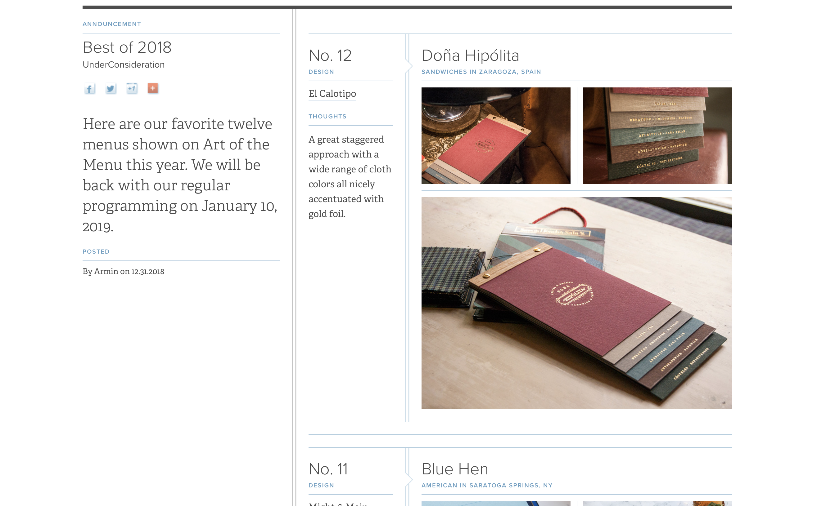 그리고 모든 메뉴는 그냥 목업이나 학생 작품이 아닌 실제 레스토랑에서 사용되고 있는 메뉴들입니다. 제 생각엔 이게 "아트오브더메뉴" 사이트의 가장 큰 장점이 아닐까 싶네요. 실제로 사용되는 메뉴들이니 그만큼 잘된 케이스가 많을테니까요.