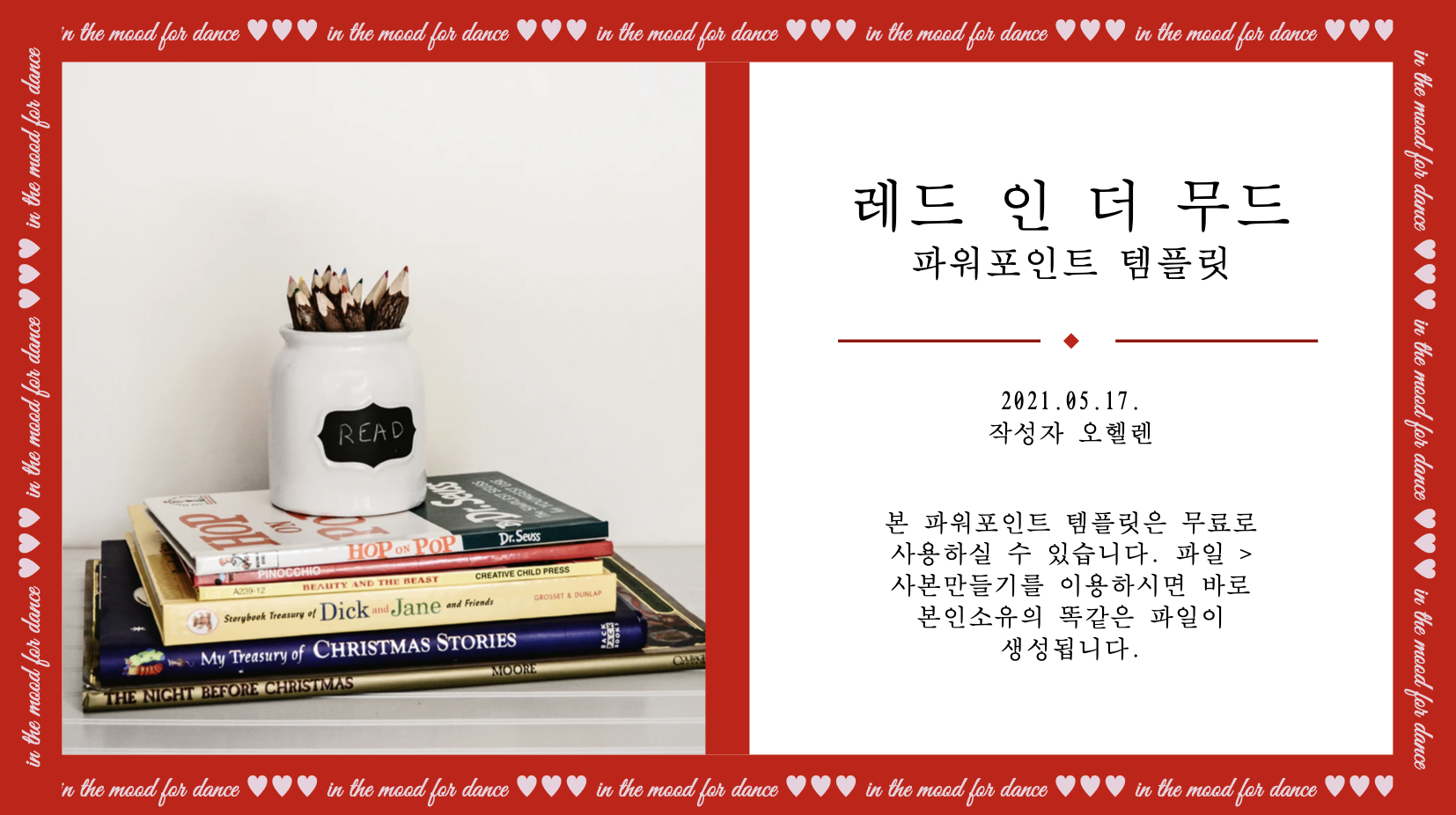 [무료템플릿] 레드 인 더 무드 책자모양 PPT 템플릿