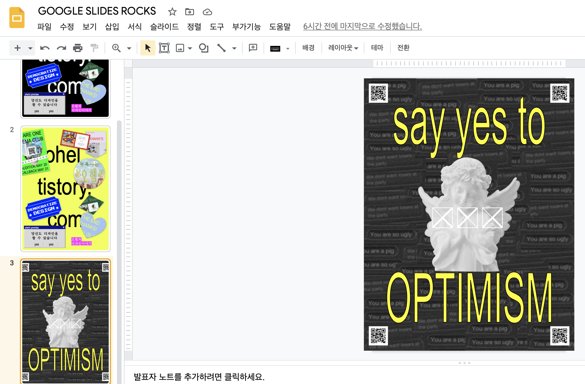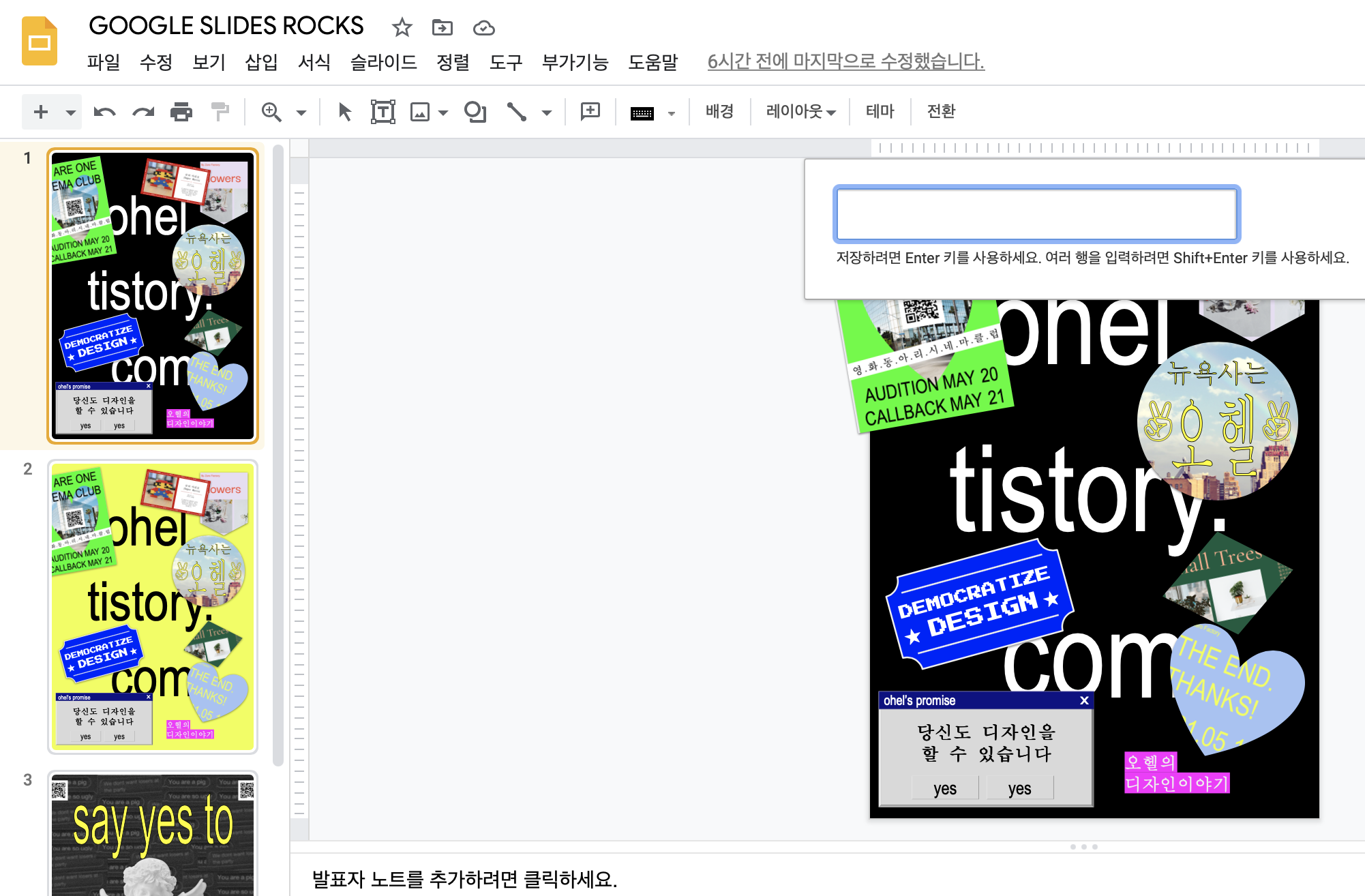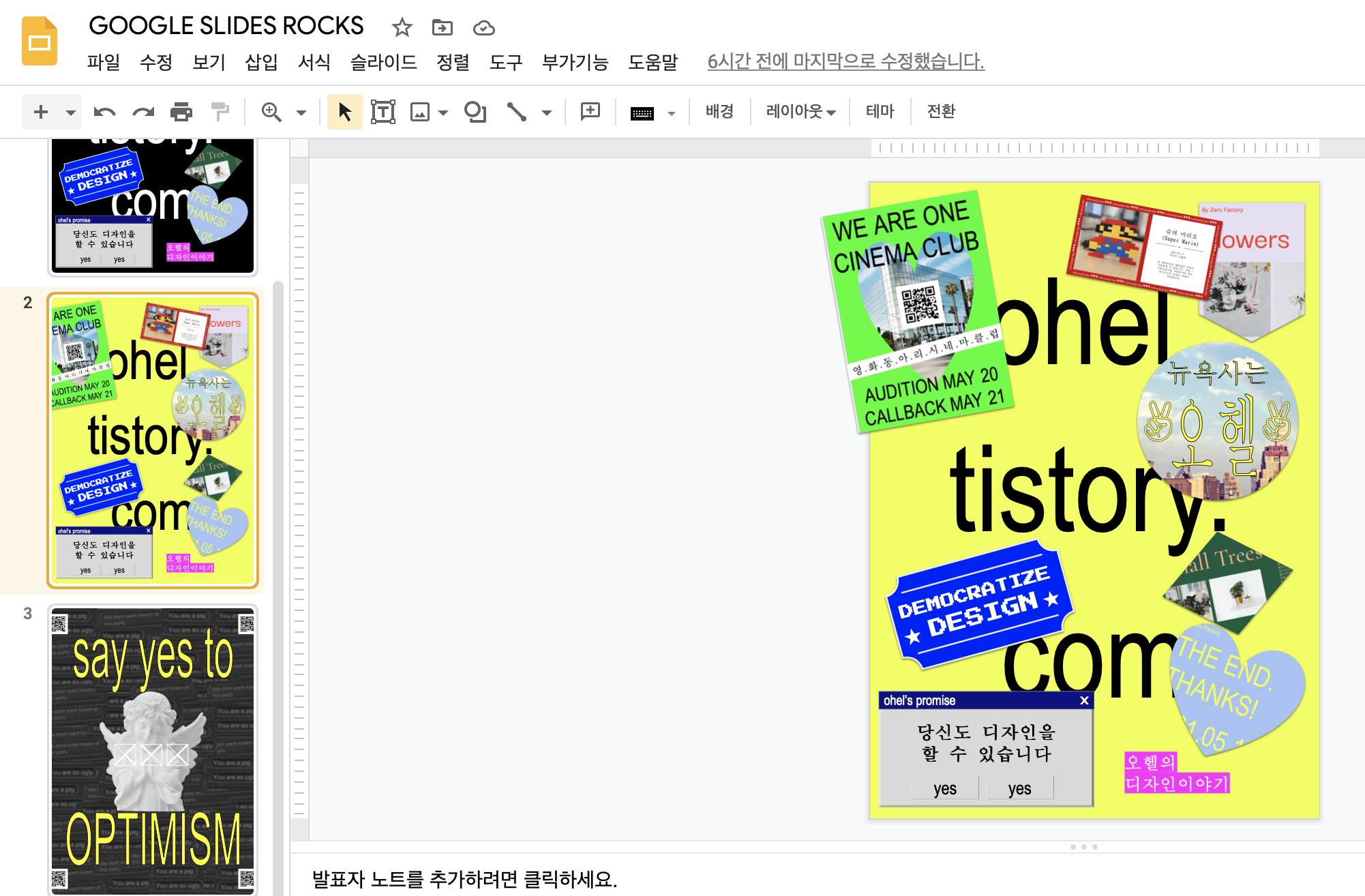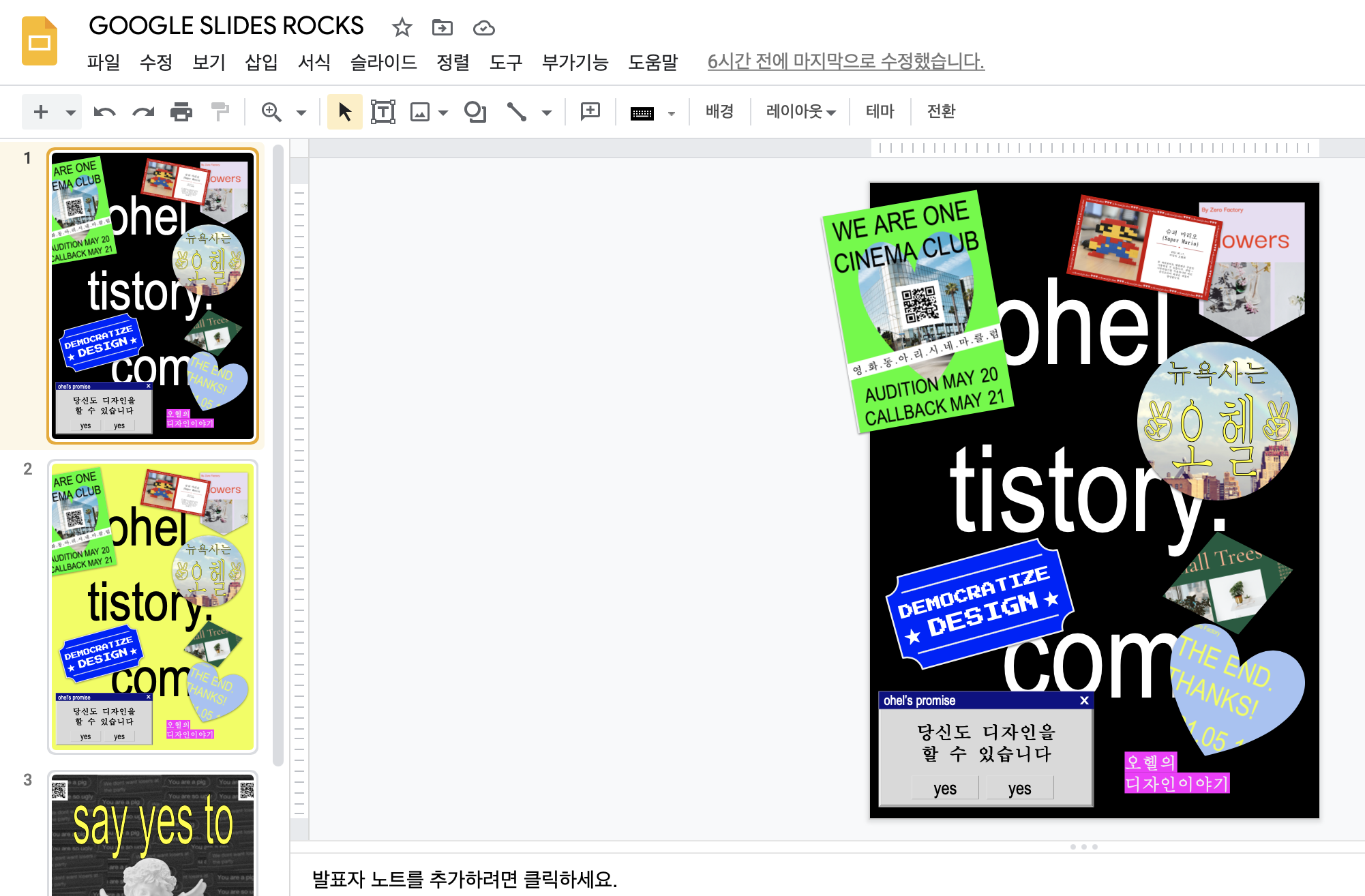 오헬입니다. 오늘은 구글슬라이드로 템플릿은 안 만들고, 한 번 재밌게 놀아 보았습니다.