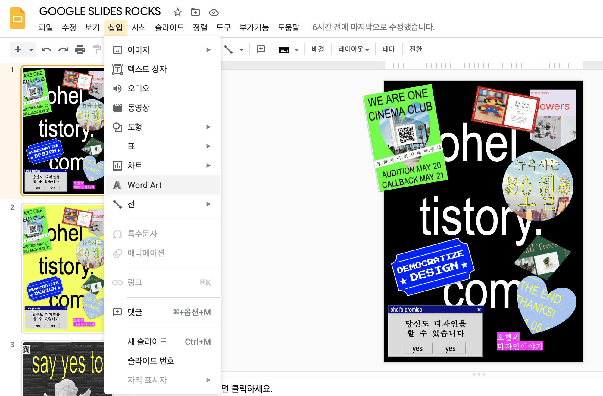 ➜ 구글슬라이드 워드아트(WordArt) 사용법 ➜
