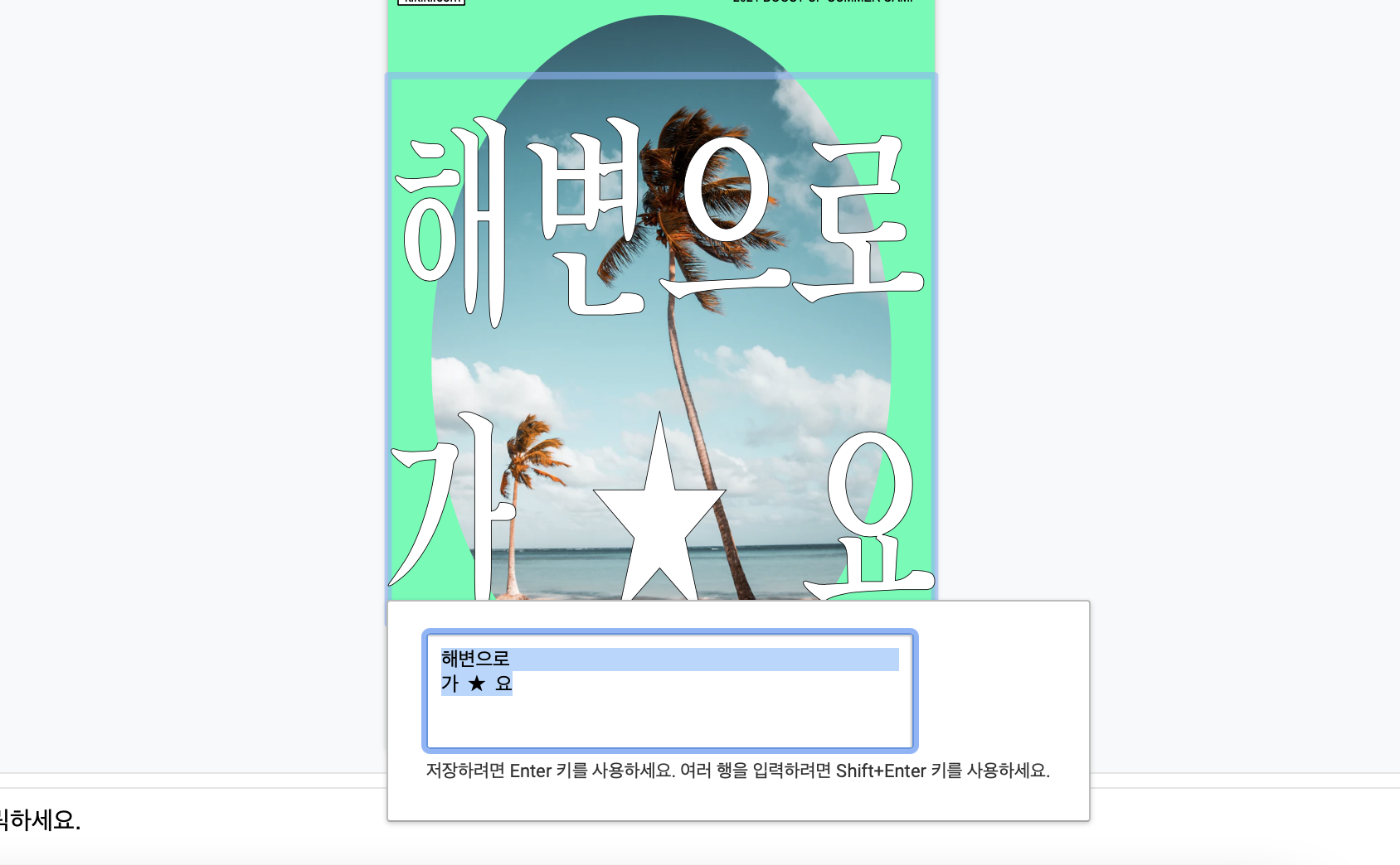 큼직한 문구를 바꾸려면 텍스트 더블클릭 >>> 원하는 문구 입력