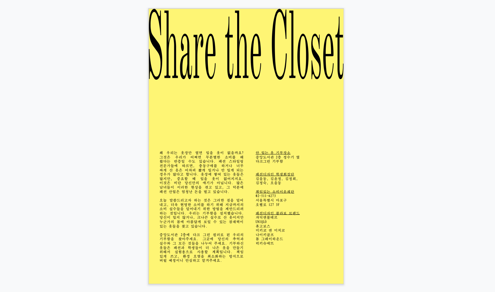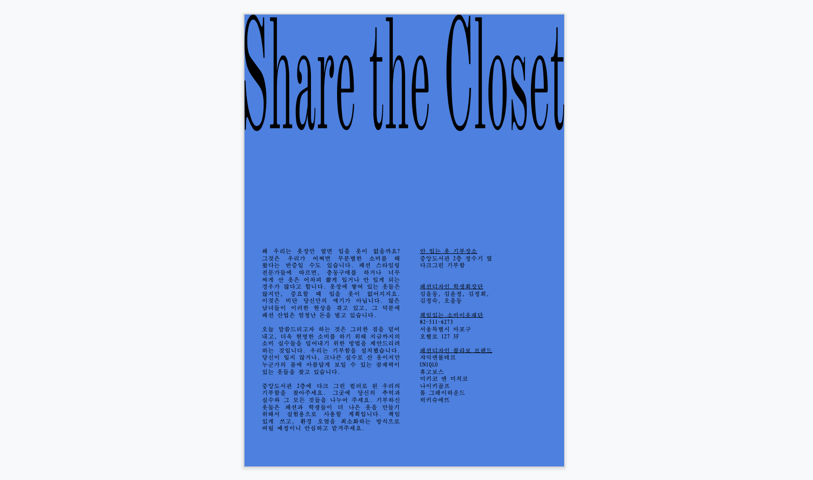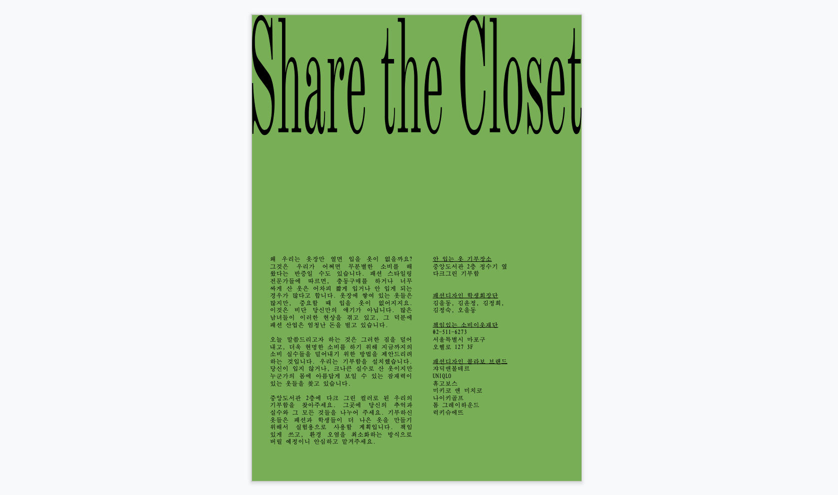 - 정치적/사회적 메시지 전달 대자보 제작, 캠페인 슬로건 및 정보 전달, 사내/교내 커뮤니케이션, 기부/모금 캠페인 홍보포스터 등