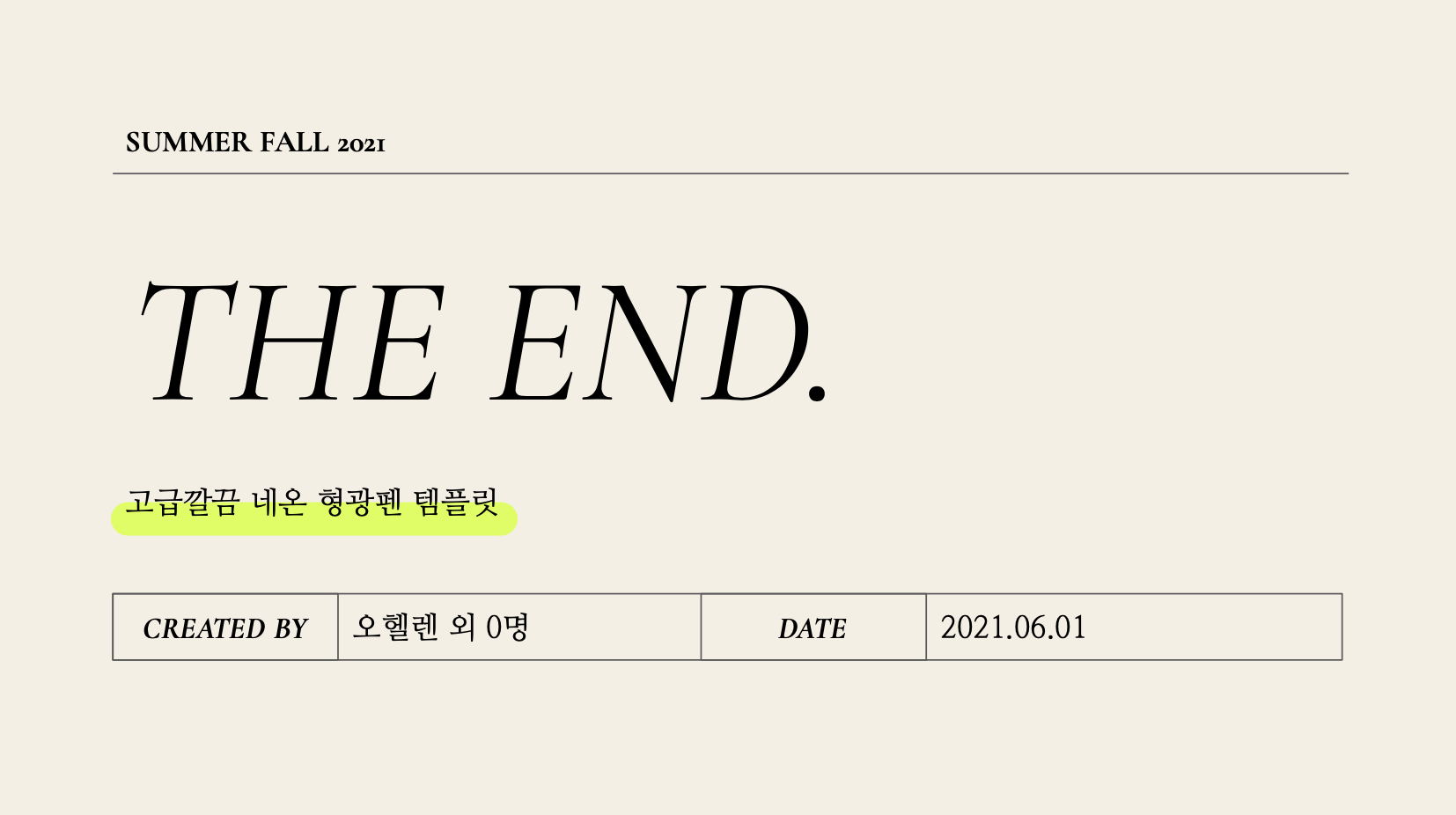 저는 개인적으로 이번 고급, 깔끔 매거진 형광펜 템플릿 디자인이 무척 마음에 듭니다. 너무 튀지도 않고, 그렇다고 너무 지루하고 잘난체하는 느낌이 없이 적절히 잘 섞인 것 같아요. 형광펜으로 쫙! 그어놓은 느낌이 여름에 활용하시기에도 좋은 것 같습니다. 겨울용도 하나 만들어봐야겠어요!
