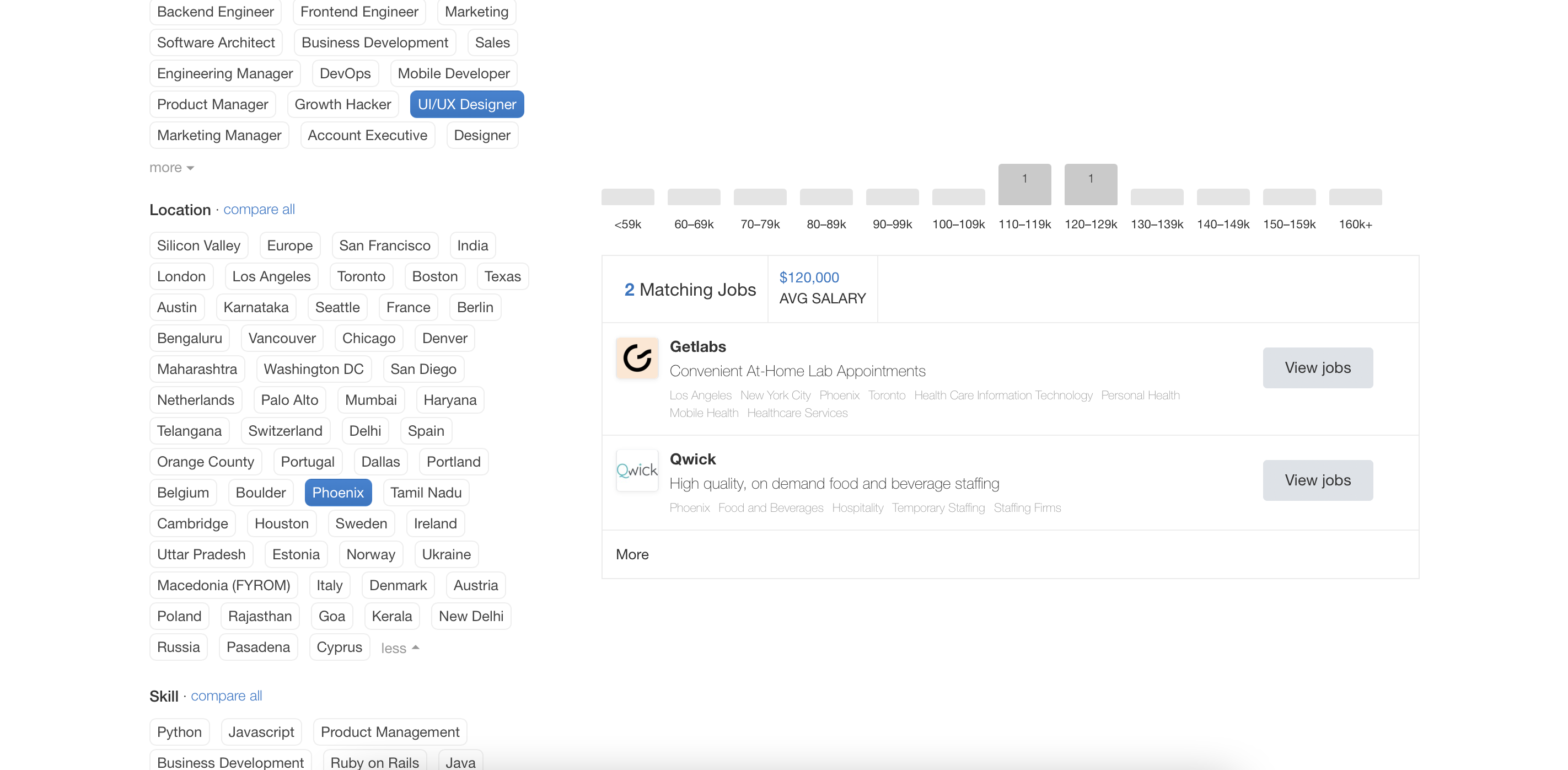 저는 인턴십을 찾으려고 돌아다녔는데, 인턴십은 물론 풀타임과 경력직까지 정말 다양한 포지션들이 있었습니다. 제가 분명히 링크드인에 "Job Alert"를 켜놨을때보다 훨씬 더 영앤쿨(young and cool)한 회사들이 많은 듯한 느낌이 드네요. 링크드인에 안 올리고 여기부터 올리는 경우도 많나봅니다. 바로 밑에 연봉수준이 나와있어서 깜놀!! 이래도 되나 싶긴 하지만, 이렇게 보여주니 경쟁수준과 회사 복지 수준을 한 눈에 볼 수 있어서 편하긴 합니다. 전체적으로 약 200만개의 테크/스타트업 job 들을 열람할 수 있다고 합니다. 개발자, 소프트웨어 아키텍트, 마케터, 세일즈, Growth Hacker, 데이터사이언티스트, 데이터 사이언스 관리자, 프로젝트 매니져, 프로덕트 디자이너, UI/UX 디자이너, 그래픽 디자이너 등 한 번쯤은 들어본 꿈의(?) 포지션들이 잔뜩 포진해 있습니다.