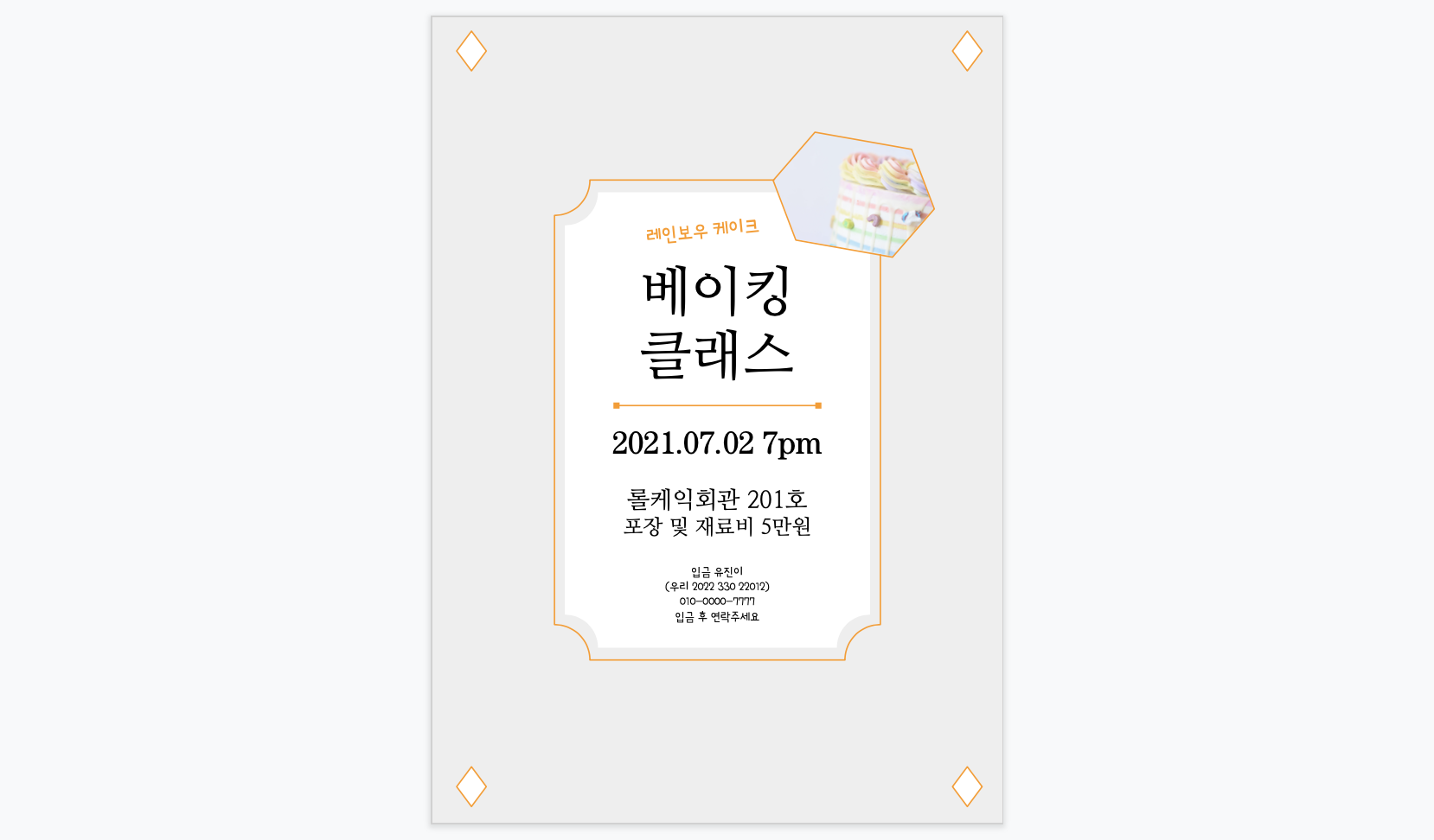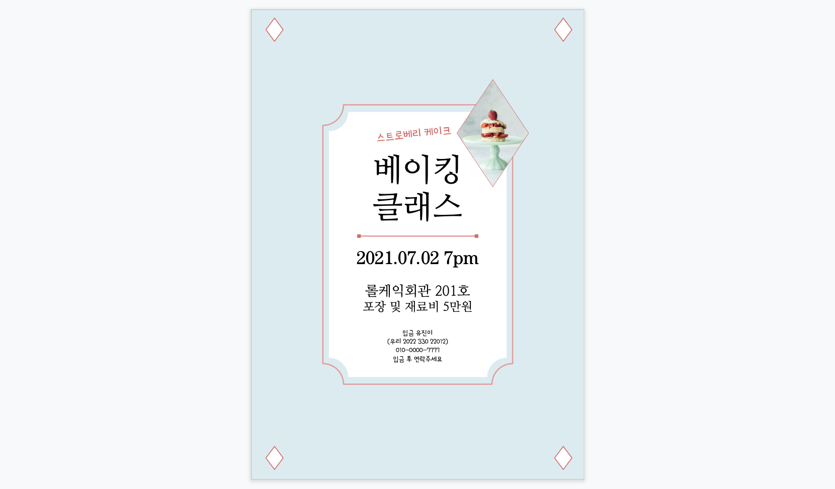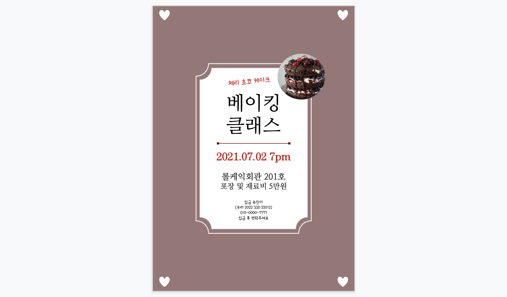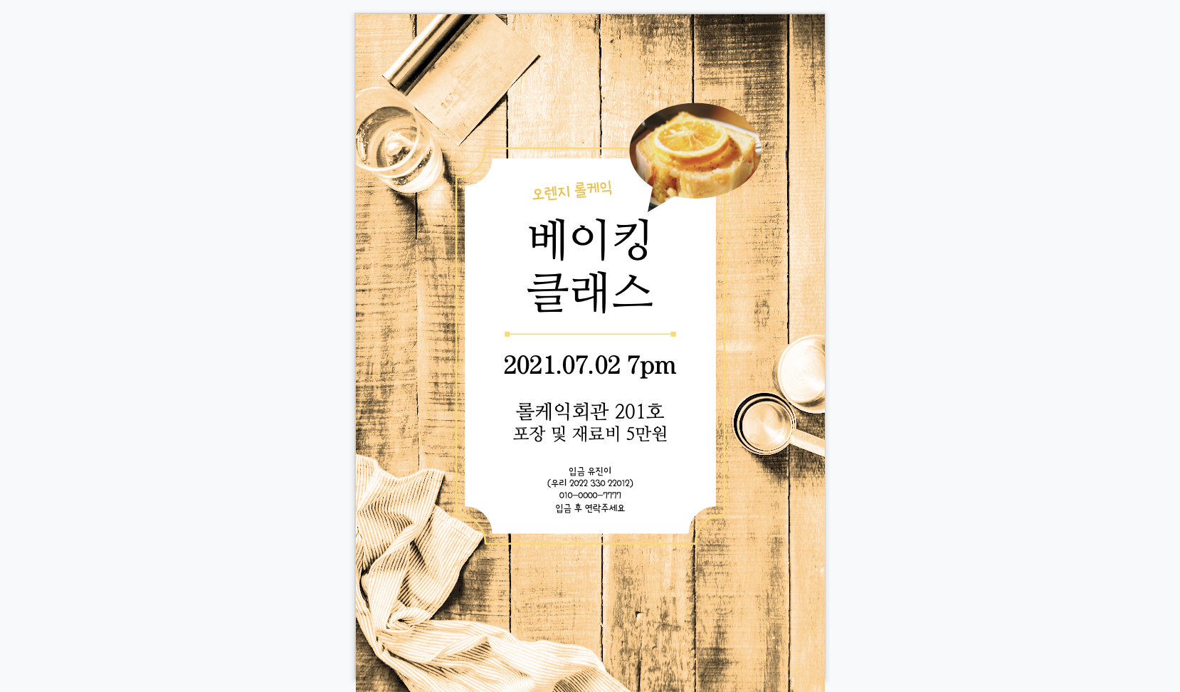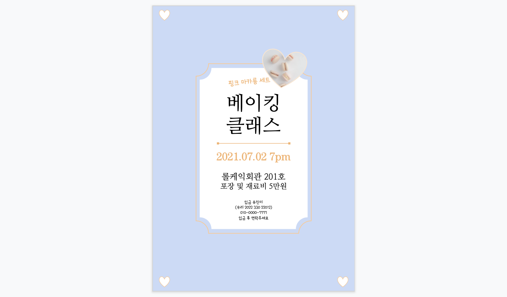이번 베이킹클래스 포스터 양식은 총 7가지 종류로 준비해 보았어요.
