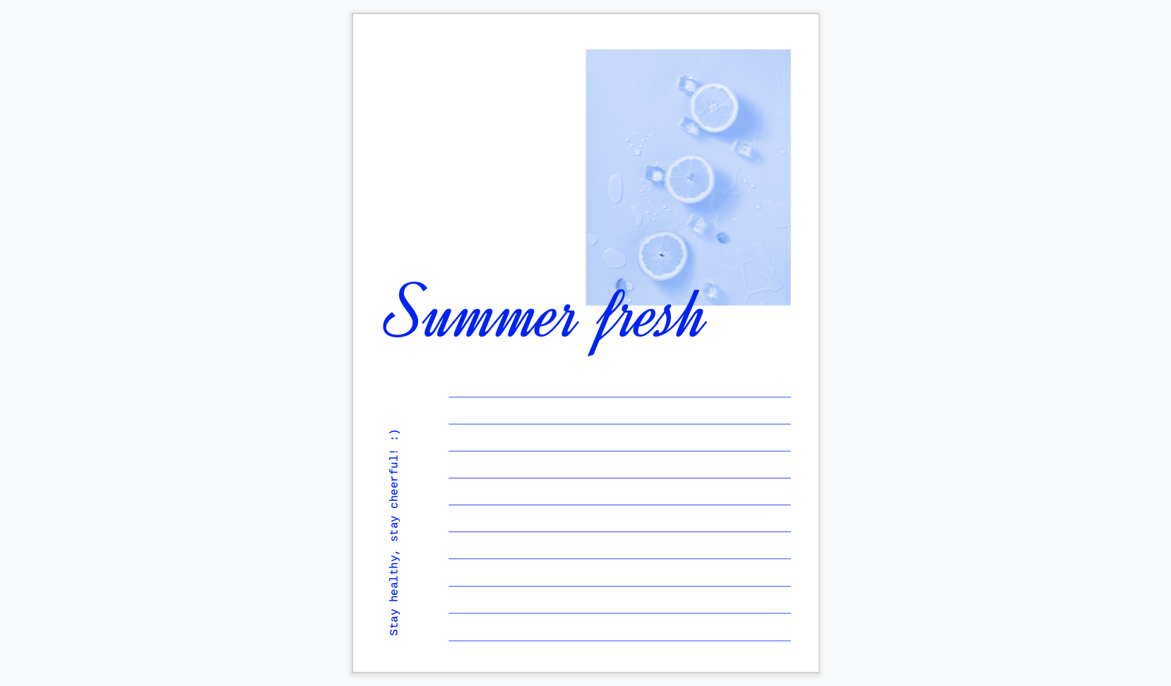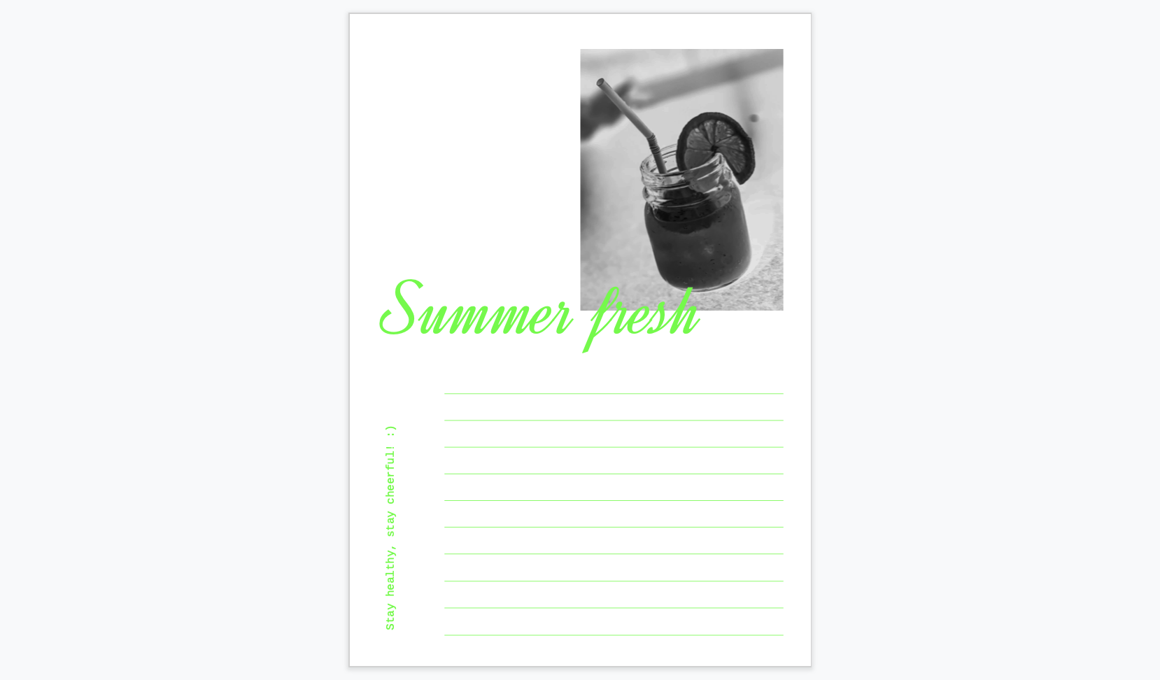 오늘은 매우 시원하고 밝은 느낌의 "프레시주스" 편지지 & 봉투 세트를 디자인해 보았습니다. 맑고 상큼한 느낌을 주는 과일주스 이미지들을 사용했고, 밝은 컬러들이 들어가있어서 봄이나 여름에 사용하시기 좋습니다. 이번 프레시주스 양식은 양면인쇄가 아닌, 한쪽 면만 인쇄해서 이용하시면 되어서 사용하시기에도 편리합니다.