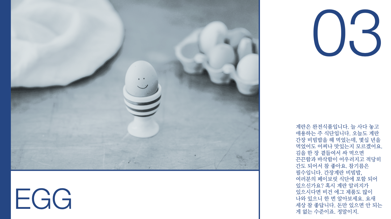 오늘은 <네온옐로 레이아웃> 디자인에 이어, 같은 시리즈로 마지막 디자인인 <클래식 다크블루 레이아웃>을 들고왔습니다. 내용을 어디에 넣어야 할 지 배치가 미리 되어있고, 구획이 깔끔하게 나뉘어져 있어서 내용만 넣어주시면 되는, 정돈된 디자인입니다. 내용의 체계가 아주 명확한 시나리오(장면), 질의응답(질문-답변), 사례연구/케이스스터디 (사례1, 2, 3...) 등에 사용해 주시면 좋습니다.