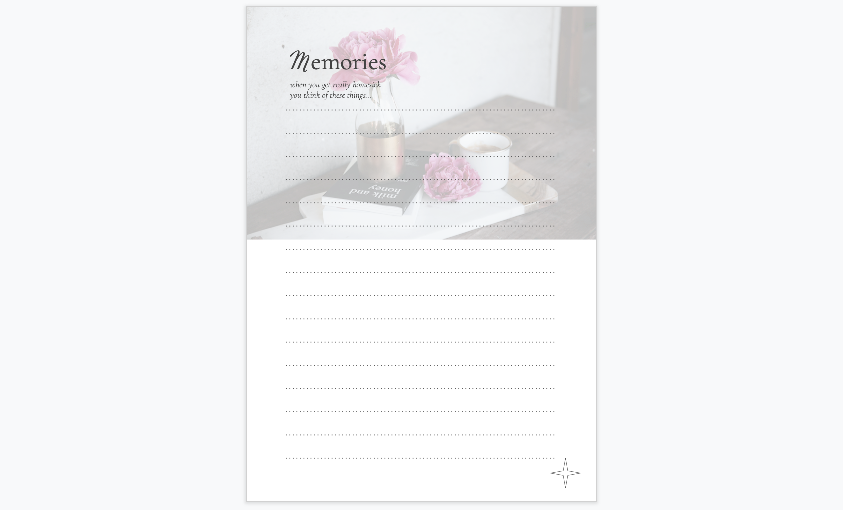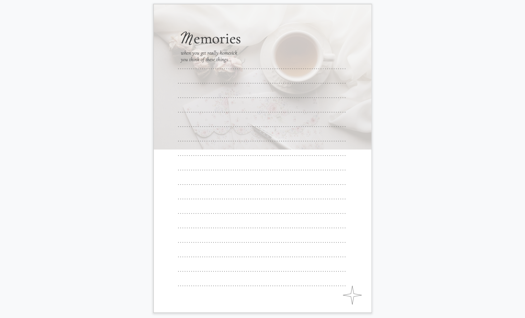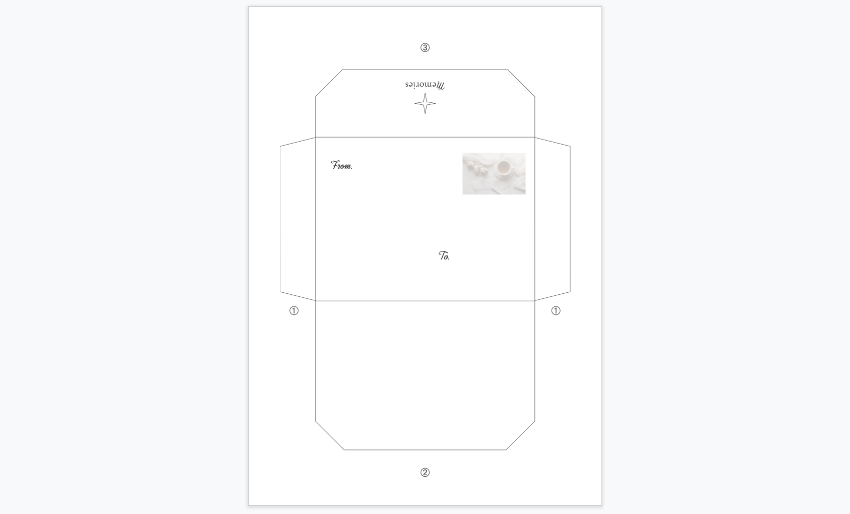 오늘은 커피 한 잔 놓고 추억을 이야기하는 느낌의 <Memories> 편지지와 봉투세트를 디자인해 보았습니다. 흰색 배경에 커피, 차, 꽃이 놓여 있어서 분위기 있고 고급스러운 디자인이에요. 컬러사용을 최대한 배제했기 때문에, 흑백으로 인쇄하시든, 컬러로 인쇄해서 사용하시든 무난하고 어디에나 잘 어울리게 사용하실 수 있습니다. 봉투 도안도 같이 오려서 사용해보세요. 거창한 편지지보다는 심플하고 그냥 무난하게 이용하고 싶으신 분들에게 추천드립니다. 양면인쇄 전용으로 나온 템플릿이지만, 한쪽 면만 인쇄해서 사용하셔도 좋습니다.