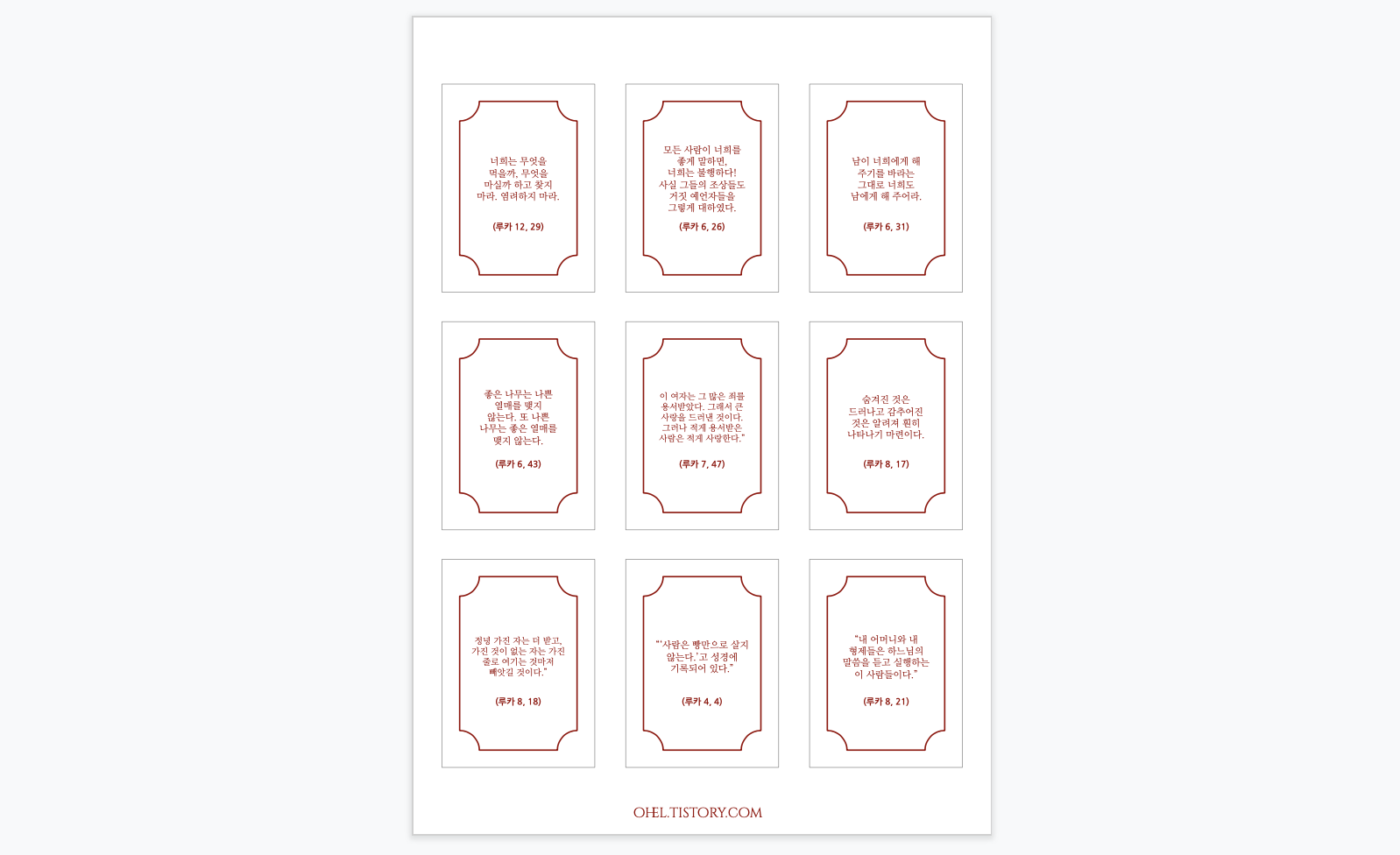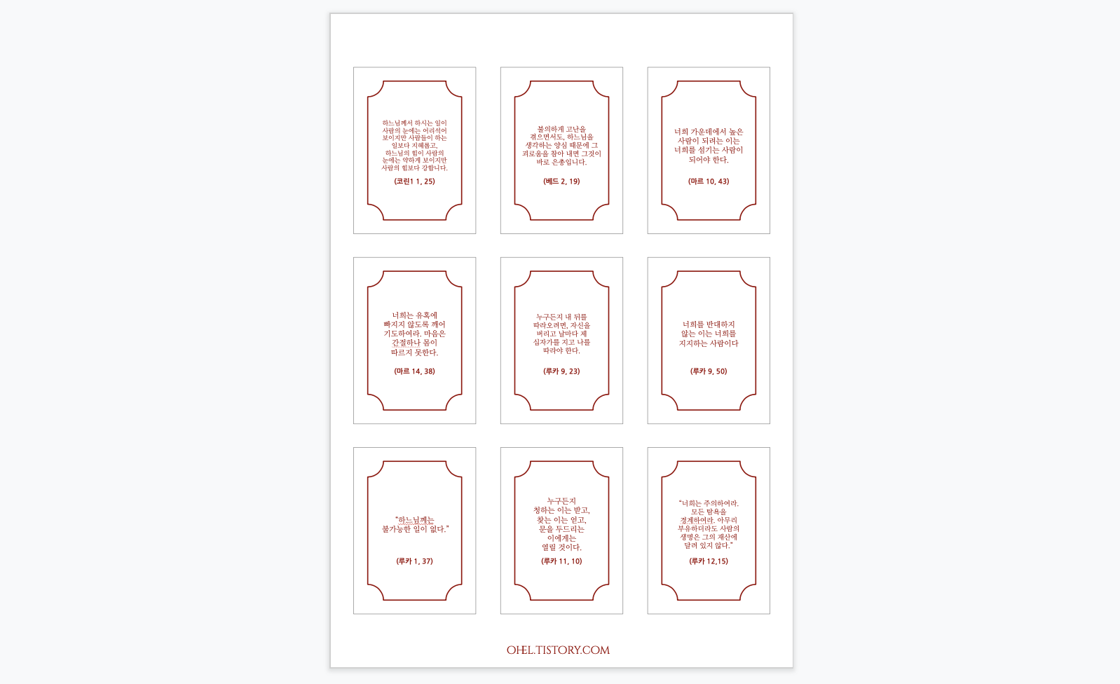 총 27개의 말씀을 준비해 보았습니다. 사용하시는 방법은 PDF 다운로드 한 뒤 인쇄하시면 됩니다.