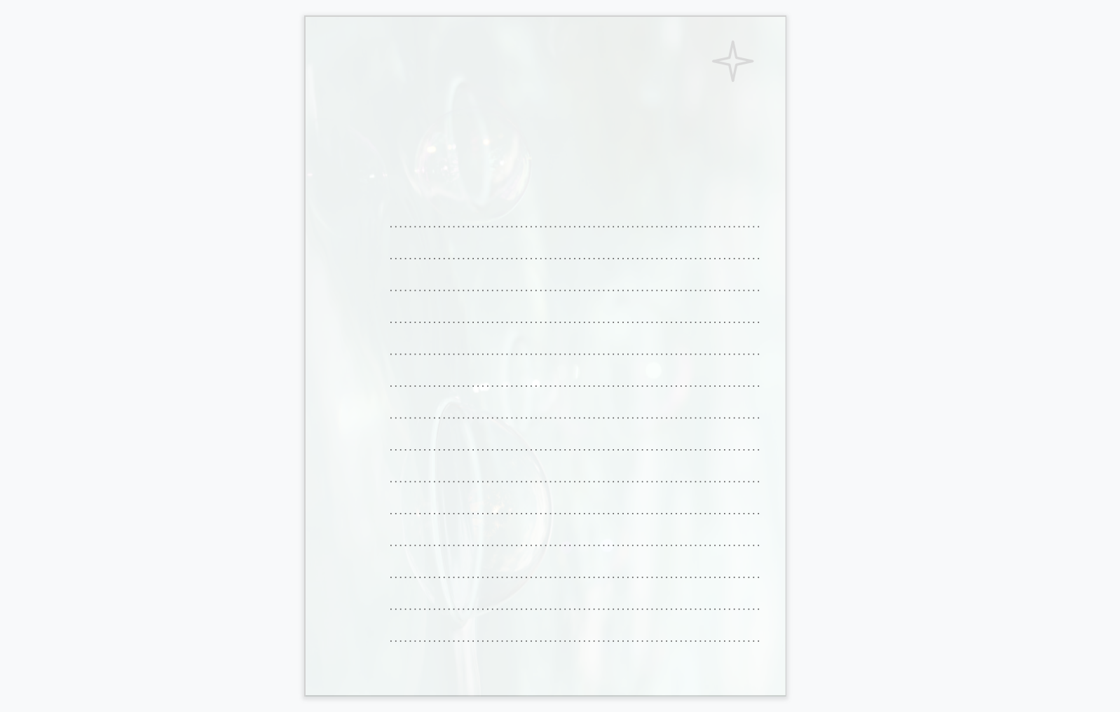 오늘은 공기방울 사진들을 이용한 신비한 감성주의 편지지 봉투세트를 디자인해 보았습니다. 공기방울은 굉장히 빨리 터져버리기 때문에 신비한 느낌, 약간은 몽환적인 느낌, 마법같은 느낌을 줄 수 있습니다. 감성적인 느낌을 주려고 세리프 계열 명조체를 사용하였습니다. 약간 현실과 동떨어진 느낌을 주기 때문에 감성적인 편지를 쓰는 데 사용하시기 좋아요. 진지한 느낌의 편지를 쓰실 때 사용하시면 가장 좋을 것 같습니다.