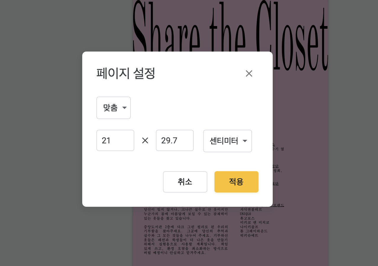 아참, 사이즈를 아주 크게 뽑으시려면 아래와 같이 파일 > 페이지설정에 가셔서 사이즈를 조절해 주시면 됩니다.