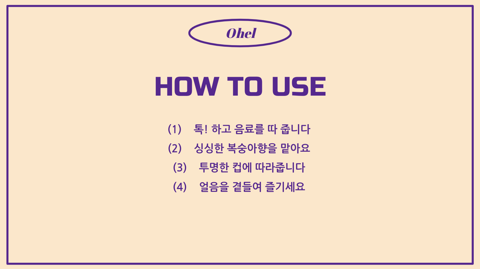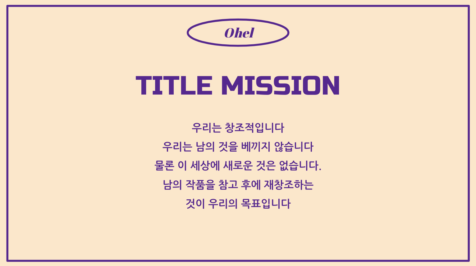 이번 템플릿은 쉽게 보기 어려운 옅은 오렌지와 퍼플 색상의 조합으로 만들어졌습니다. 때문에 특이한 컨셉이나 빈티지한, 올드한 컨셉을 현대적으로 새롭게 해석한 내용에 딱인 디자인이에요. 텍스트는 가능하면 영어 사용을 추천드리지만, 한글로 쓰실 경우에는 송명체 song myung 추천드립니다. 제가 아래 입력해 놓은 내용은 예시이므로, 본인의 아이디어와 슬로건으로 바꾸어서 채워보세요. 슬라이드 하나 당 하나의 포인트를 전달하는 것을 목표로 꾸며 보시면, 늘어지지 않고 간결하게 요점만 쏙쏙 전달해주는 멋진 파워포인트를 만드실 수 있을거에요.
