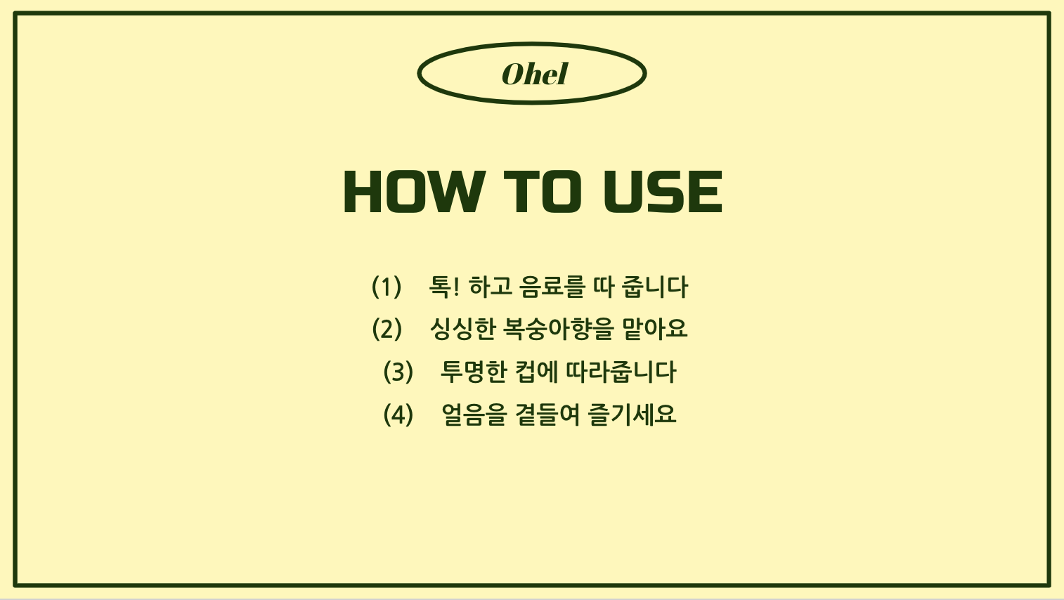 이번 템플릿은 옅은 옐로 배경에 다크 그린 텍스트 색조합으로 만들어보았어요. 상큼한 느낌을 주면서도 텍스트가 다크 그린 컬러로 읽기 쉽게 되어 있습니다. 상큼한 느낌, 젊은 느낌, 그리고 음식이나 영양제, 건강기능식품 컨셉 제안에 쓰기 좋은 컬러조합이에요. 템플릿에 기본 텍스트가 영어로 입력되어 있으나, 한글 사용을 원하실 경우에는 프리젠테이션 전체적으로 송명체 song myung 사용을 추천드립니다. (구글슬라이드 기본 폰트로 포함되어 있어요!)