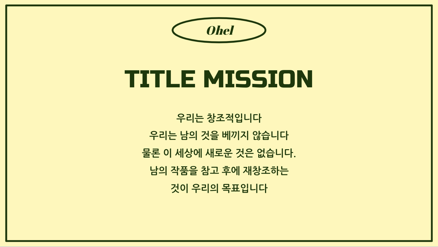 오늘은 빈티지 볼드타입 시리즈 마지막인 옐로그린 PPT 양식을 가져왔어요. 구글 슬라이드로 심플하게 큼직한 영문 폰트를 이용해서 포인트를 준, 심플하면서도 세련되고 임팩트 있게 활용 가능한 디자인이에요. 같은 시리즈의 다른 색조합으로 민트버건디, 핑크네이비, 오렌지퍼플도 있으니 다른 색이 필요하신 분들은 찾아서 맞는 템플릿을 골라 쓰시면 되고, 또 본인만의 색조합을 만들어 보셔도 좋을 것 같습니다.