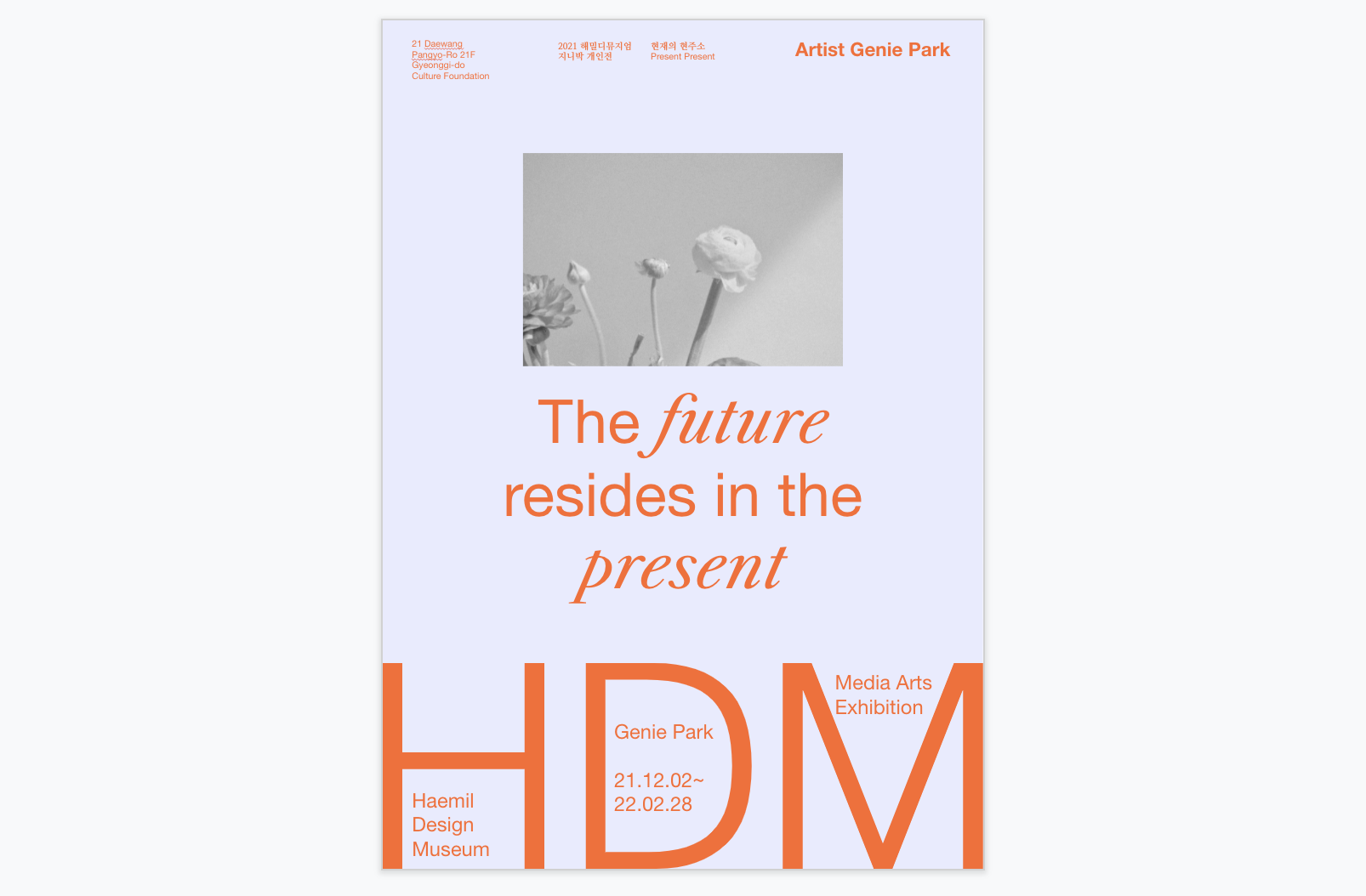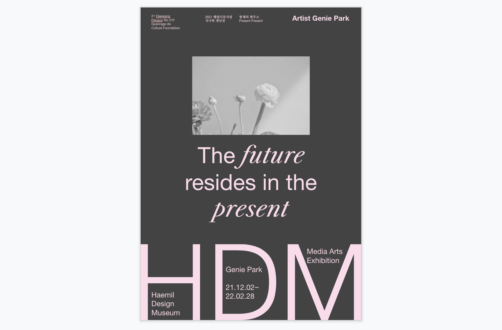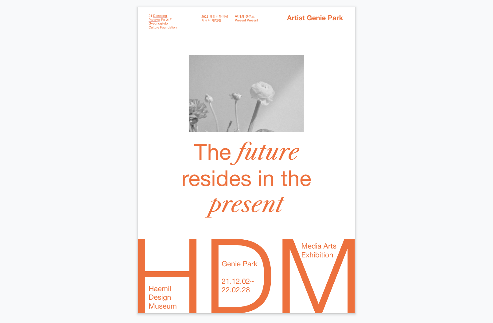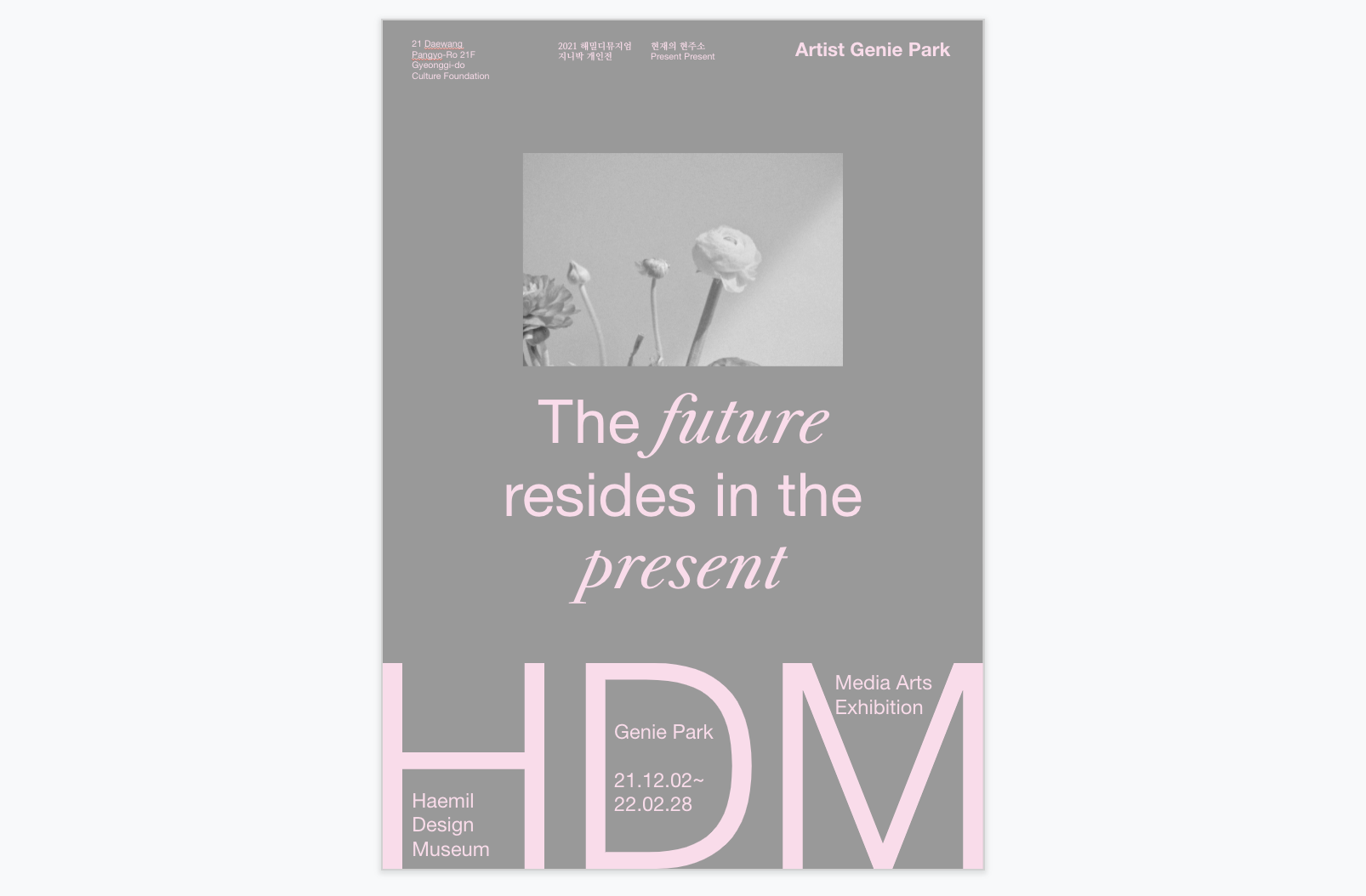 The future resides in the present 21 Daewang Pangyo-Ro 21F Gyeonggi-do Culture Foundation Artist Genie Park 2021 해밀디뮤지엄 지니박 개인전 현재의 현주소 Present Present Genie Park 21.12.02~ 22.02.28 Media Arts Exhibition Haemil Design Mu