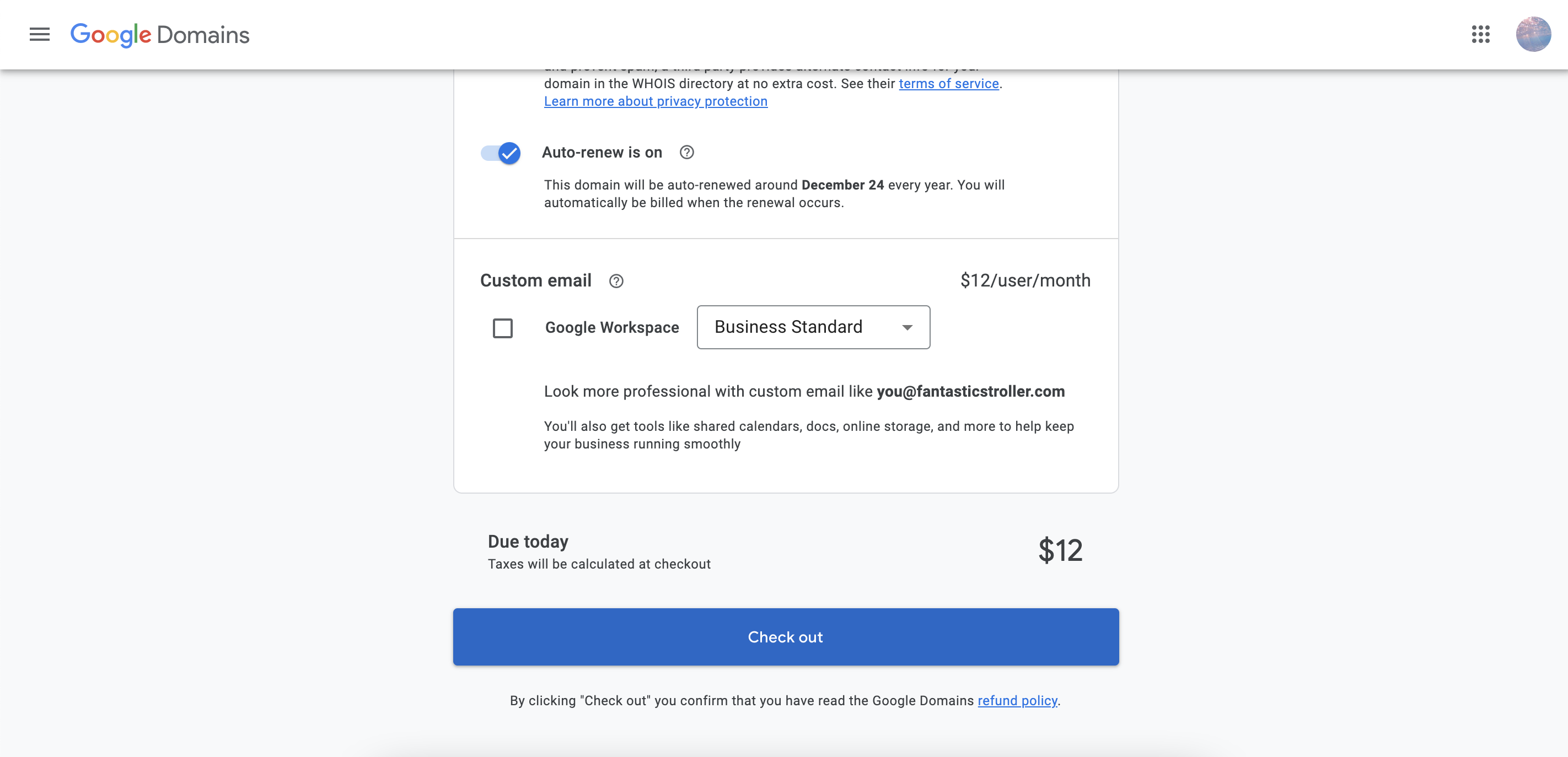 3) 구글 도메인서비스 (Google Domains) - $12