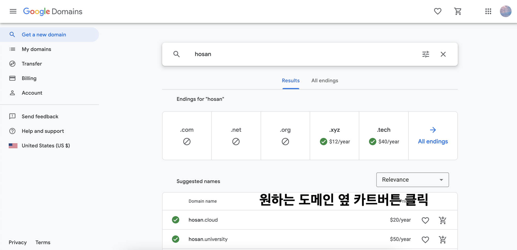 1. 먼저 원하는 도메인 검색