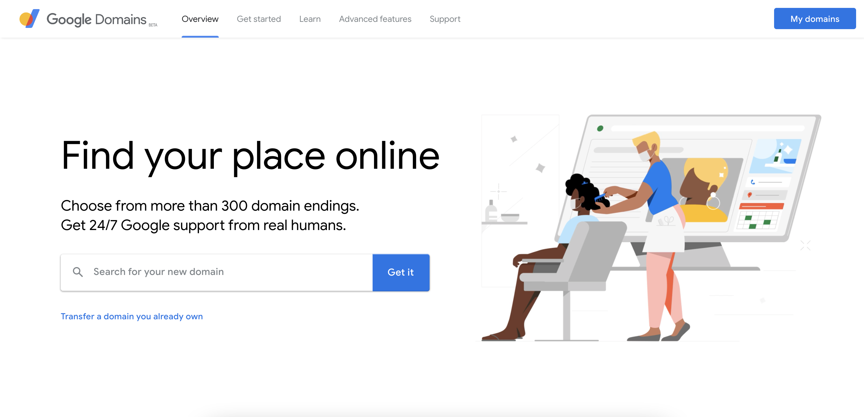 Find your place online with a domain from Google, powered by Google reliability, security and performance.