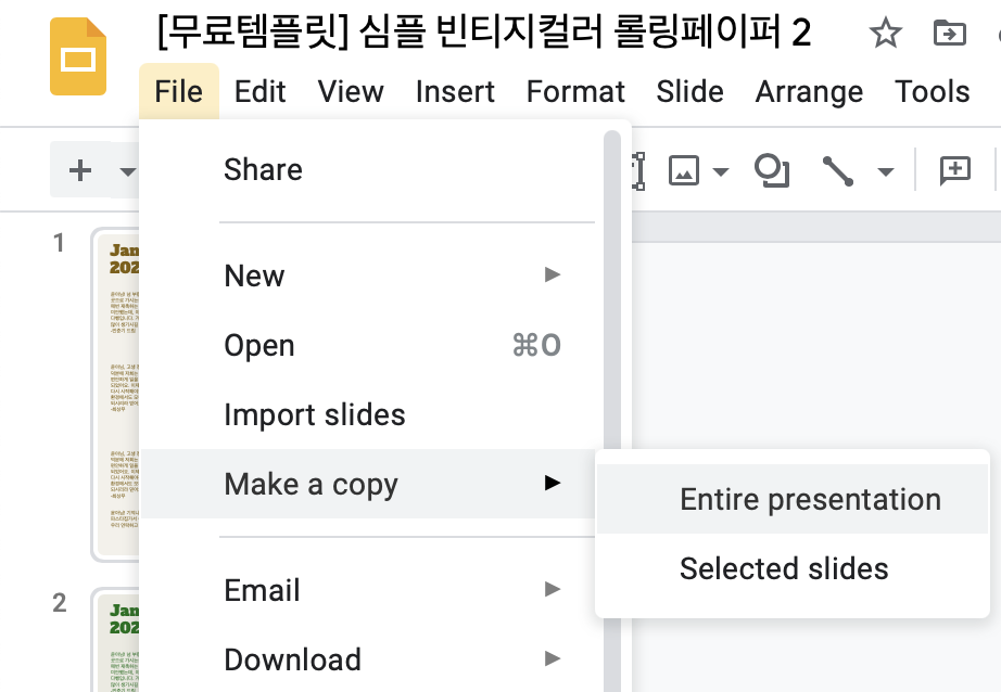 사용방법 : 구글슬라이드 파일 > 사본만들기입니다.