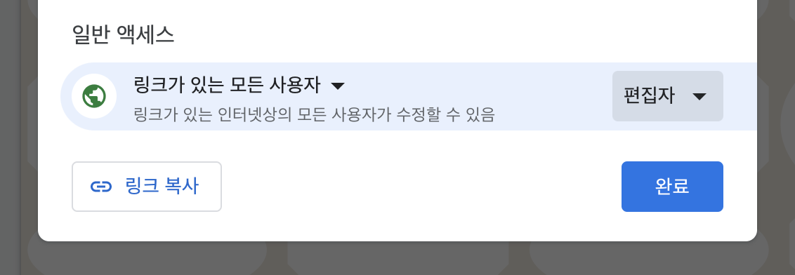 공유 > 링크가 있는 모든 사용자 > 편집자