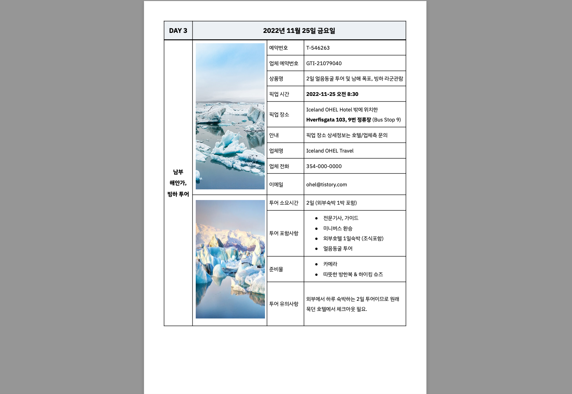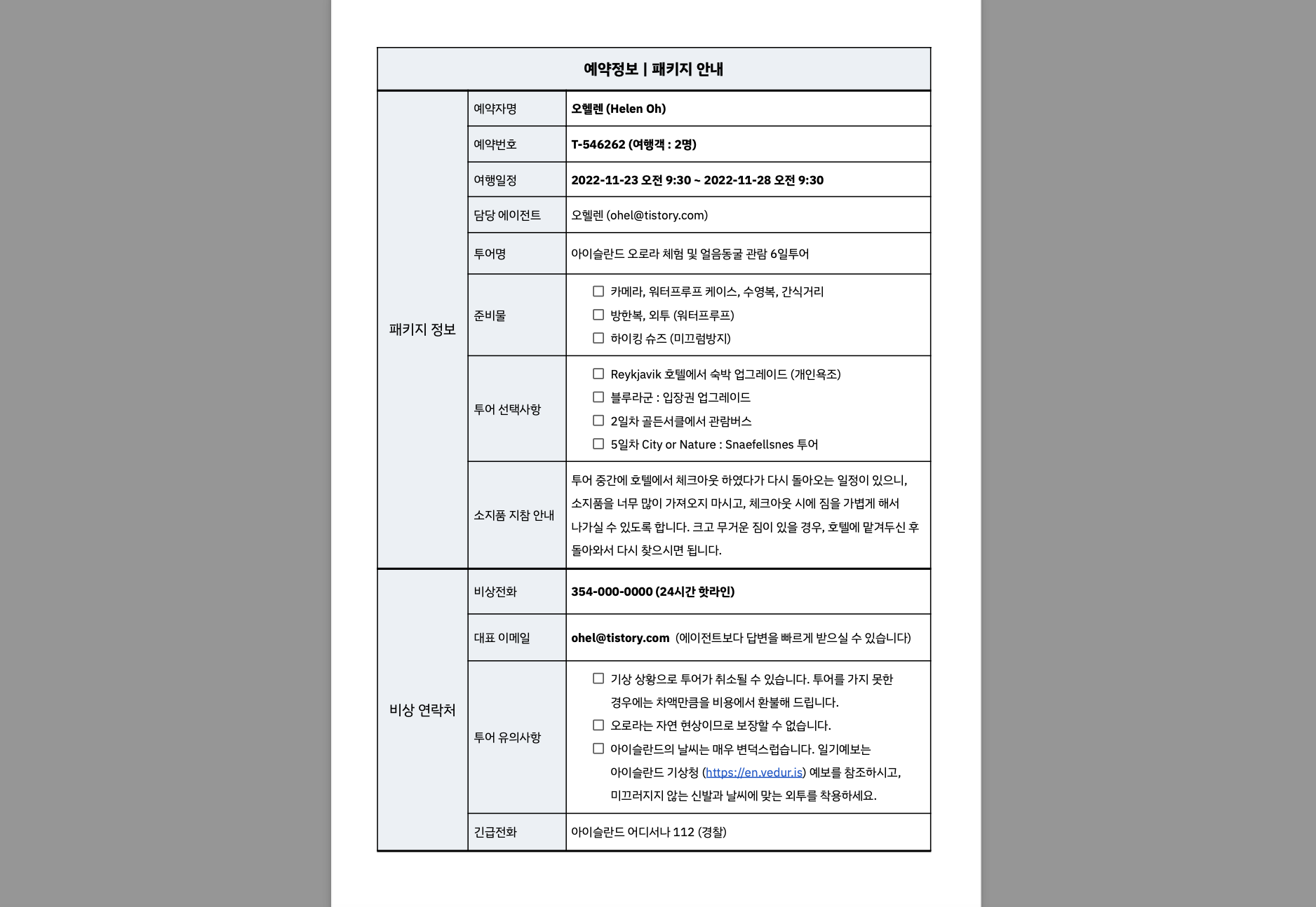 - 해외업체에 패키지투어나 관광상품을 예약했을 경우, 번역본을 만들 때 손쉽게 정리