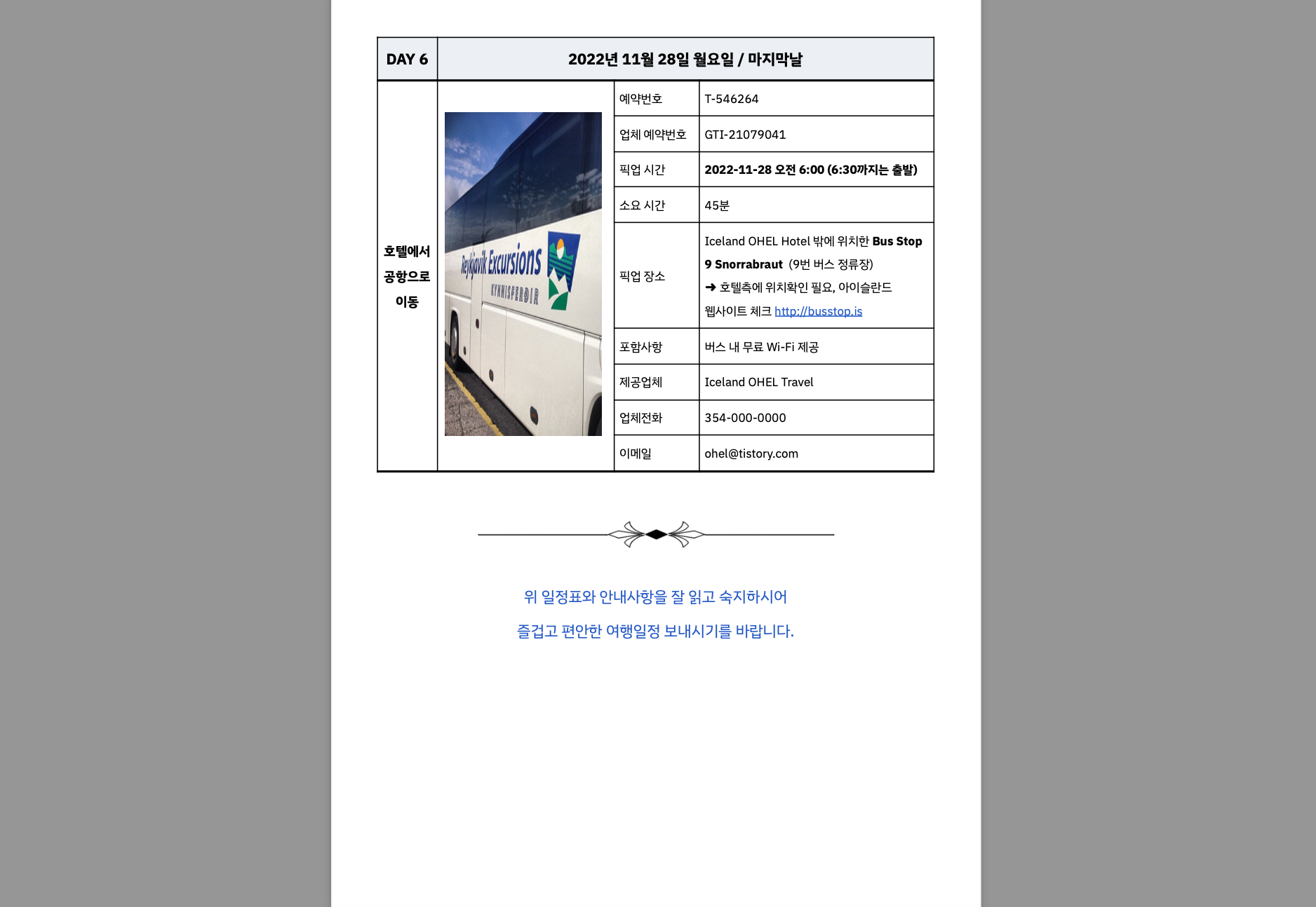 오늘은 정말 오랜만에 구글닥으로 문서 양식을 디자인해 보았습니다. 국내여행이나 해외여행의 일정을 보기 쉽게 표로 정리해 둔, 무료 여행 일정표 양식입니다. 보통은 여행사에서 제공하는 일정표를 사용하시겠지만, 자유여행을 가거나 번역을 해야 할 경우 따로 양식을 만들어야 하는 불편함이 생기는데요, 제가 만든 무료템플릿을 이용하시면 훨씬 빠르고 편리하게 작업하실 수 있습니다.