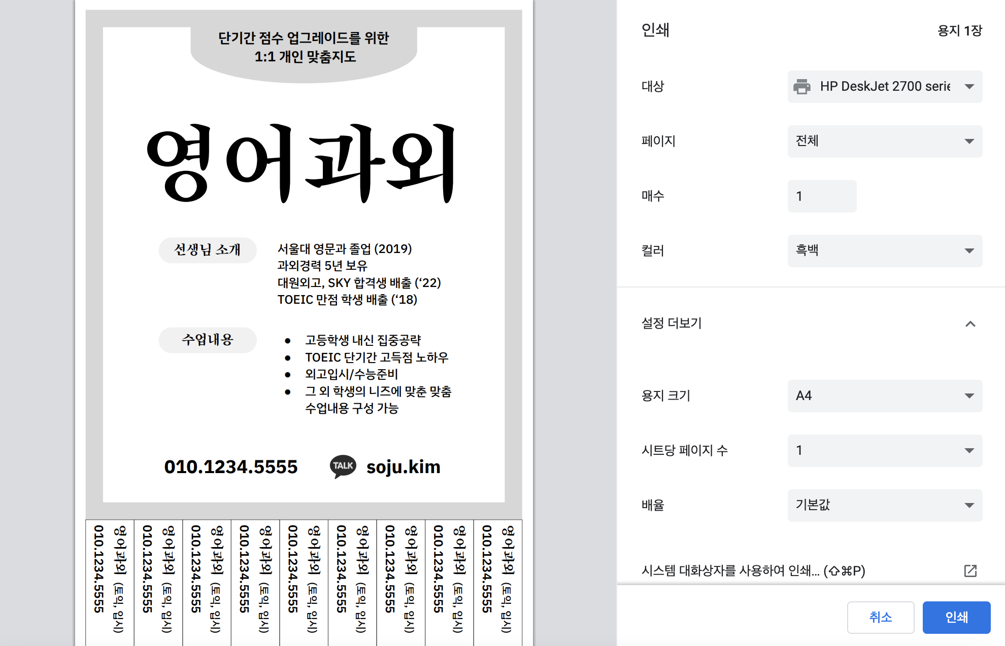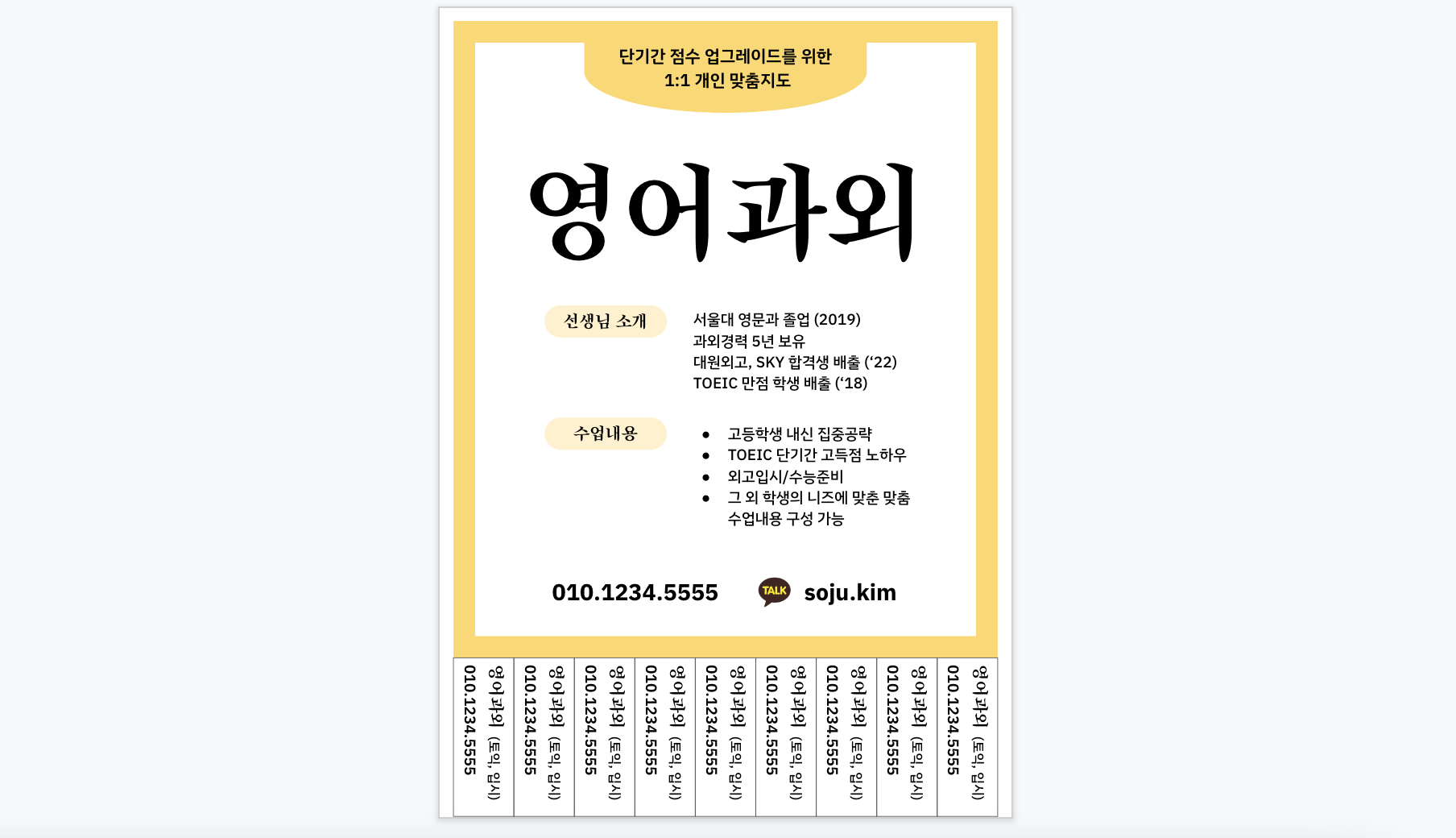 [무료템플릿] 과외 전단지 양식 (A4 문어발 포스터)