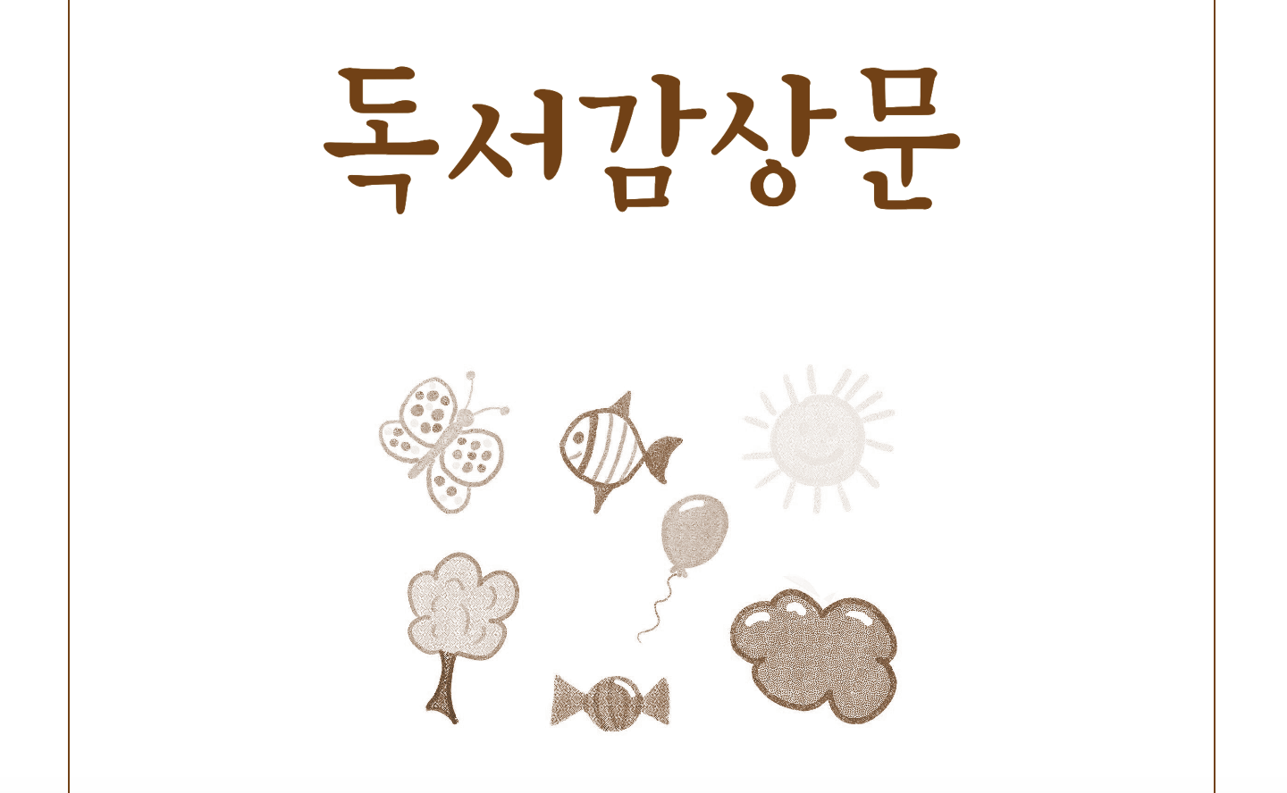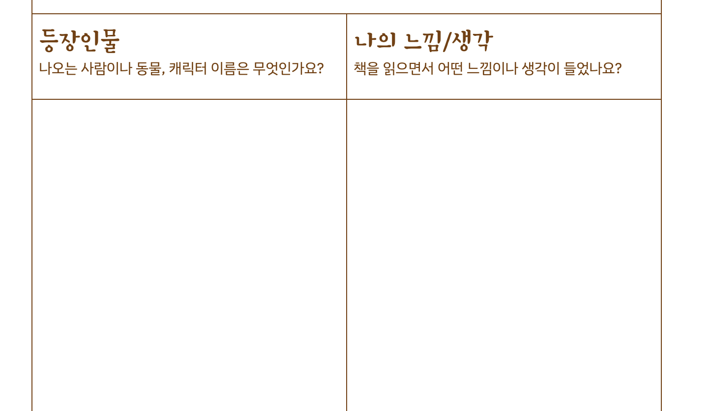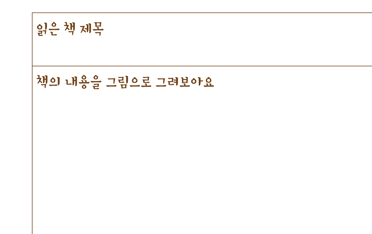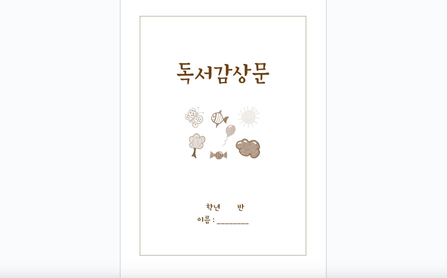 전체적으로 갈색으로 통일하였고 (흑백 인쇄 대비) 귀여운 글자체와 그림을 사용해서 흥미를 높였습니다. 처음에 제목 페이지가 있으니 이 곳은 가급적 엔터를 치거나 손대지 마시고 사용해주세요.