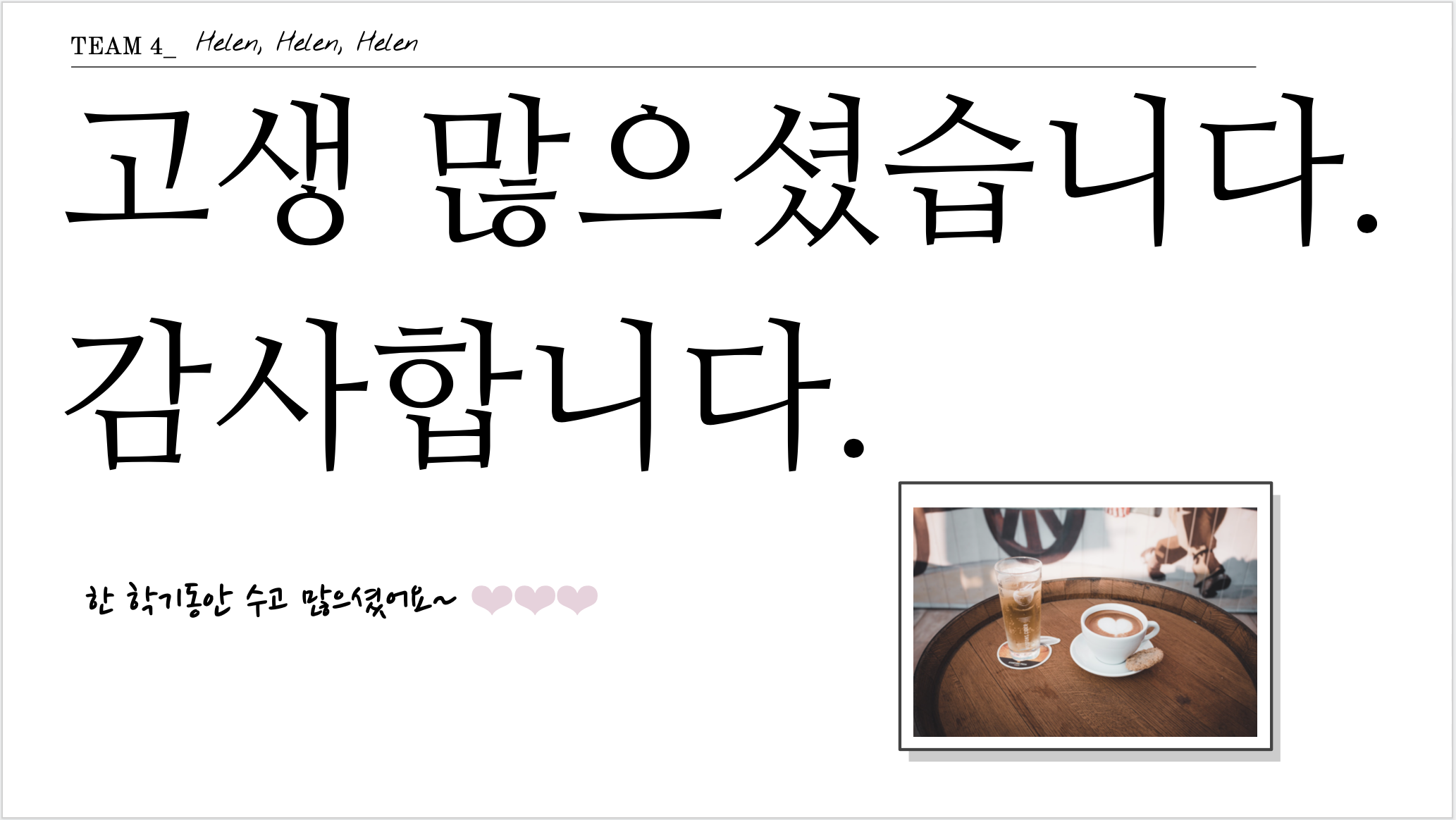 그럼 요긴하게 쓰세요! 팀플 발표 준비할 때 항상 시간에 쫓기고 바쁘실 줄로 아는데요, 발표준비에 조금이라도 도움이 되었으면 합니다.