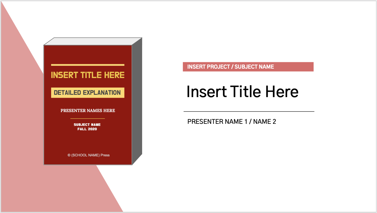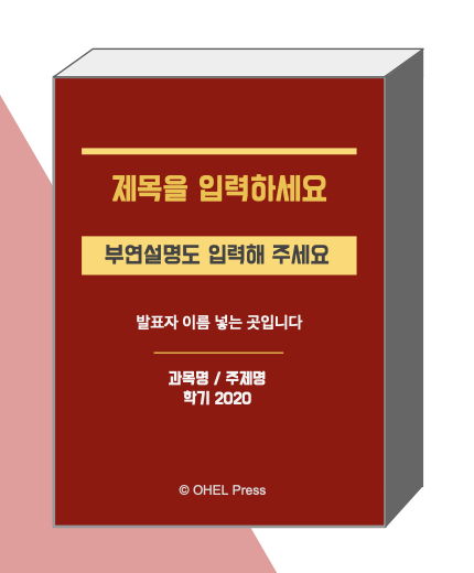 오늘은 구글 슬라이드(Google Slides)로 하드커버북 테마의 파워포인트 템플릿을 만들어 보았습니다. 학술적인 내용, 문학 관련 발표, 모든 결과물을 정리한 리포트 및 요약형태의 발표에 쓰시면 좋은 디자인입니다. 실제로, 제가 수업 시간에 프로젝트 결과물 총정리 형태의 발표에서 사용한 템플릿입니다.