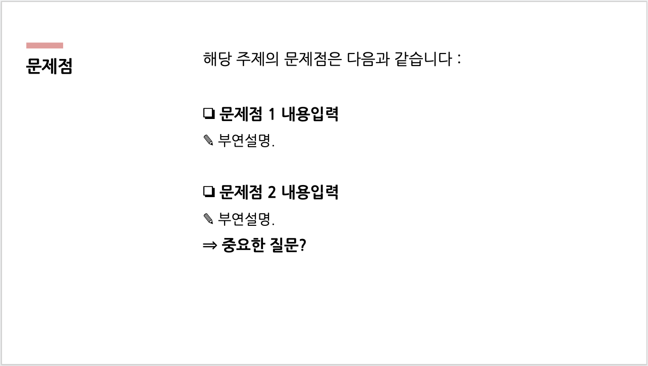 - 저는 미국 디자인 대학원에 다니고 있으며, 실제 수업시간에 발표 시 사용했던 템플릿과 동일합니다.