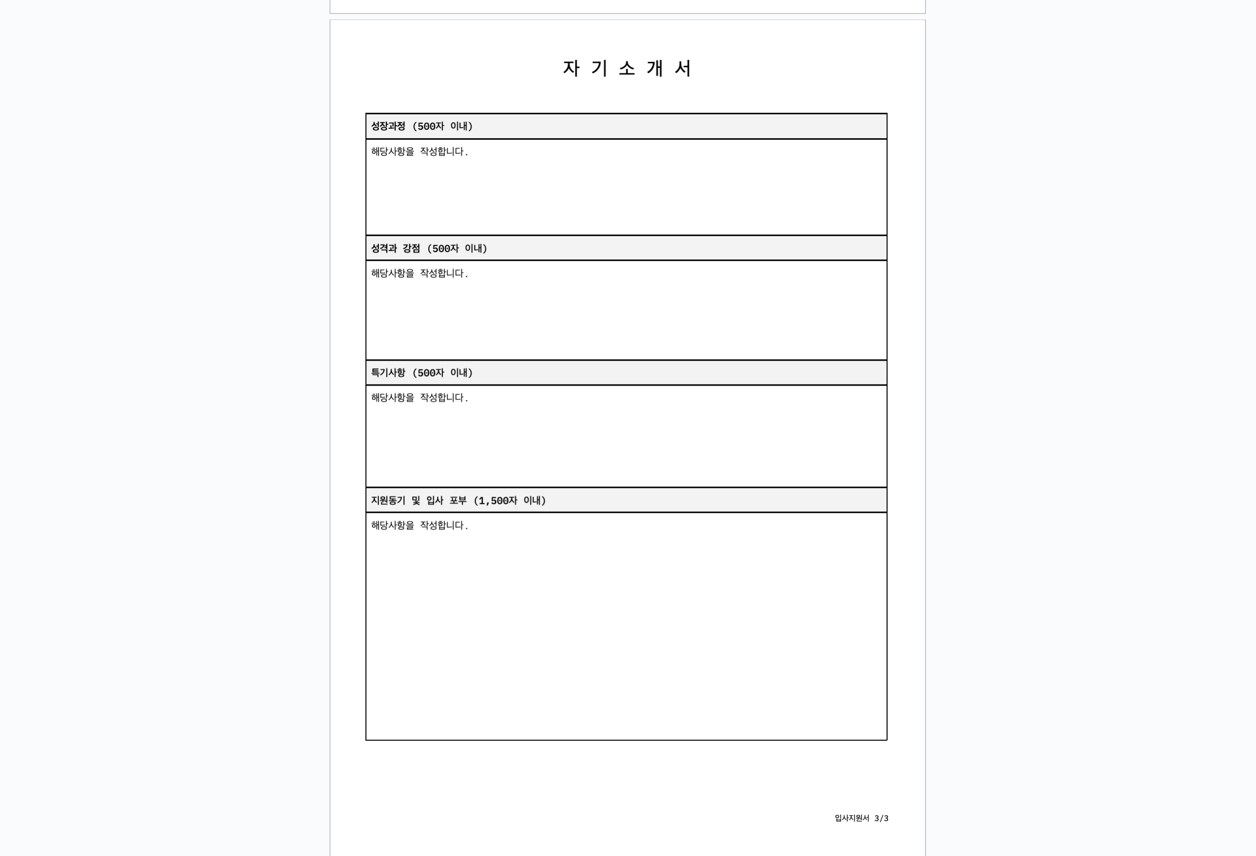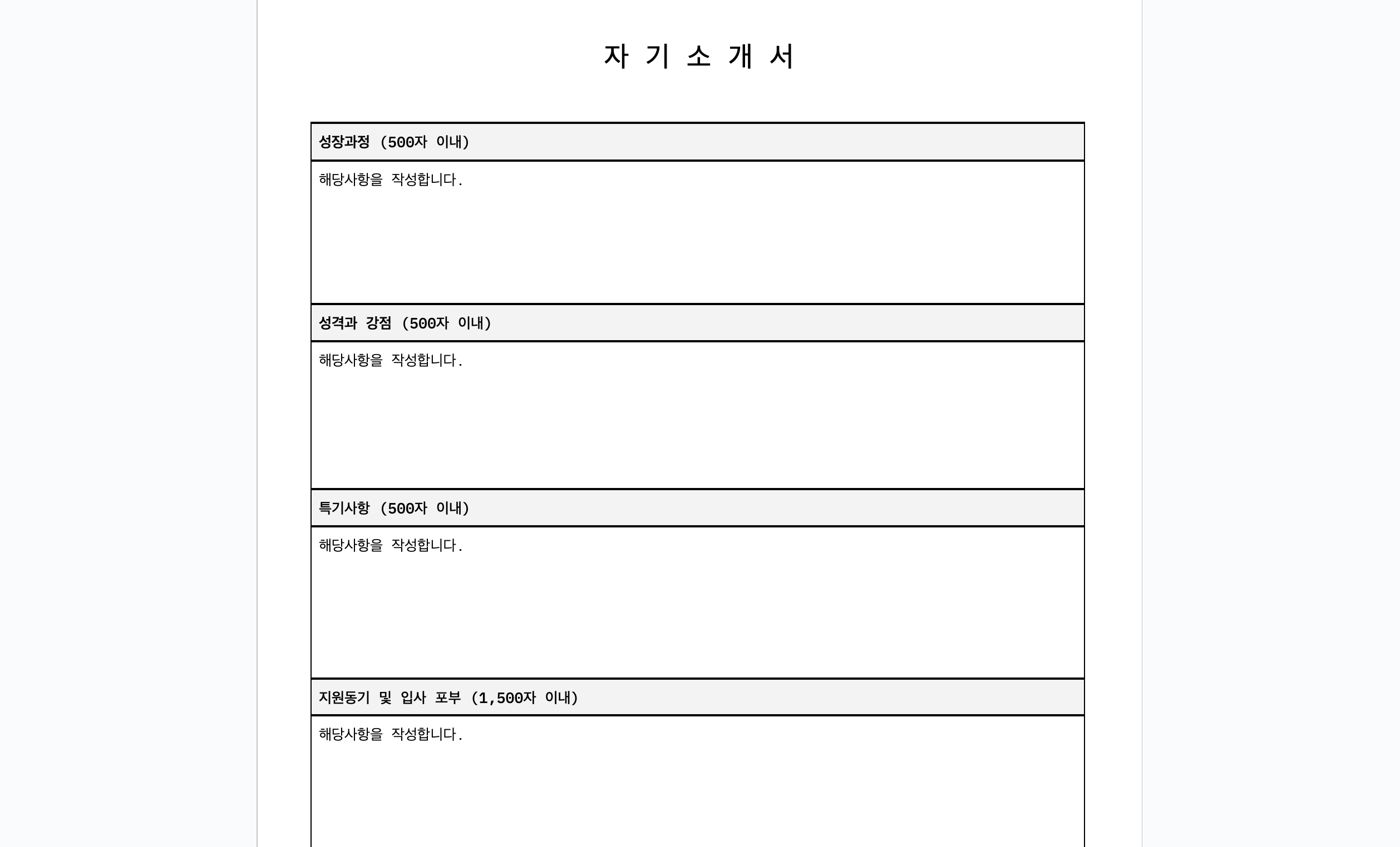 [무료템플릿] 국문 입사지원서 (이력서+자소서) 템플릿