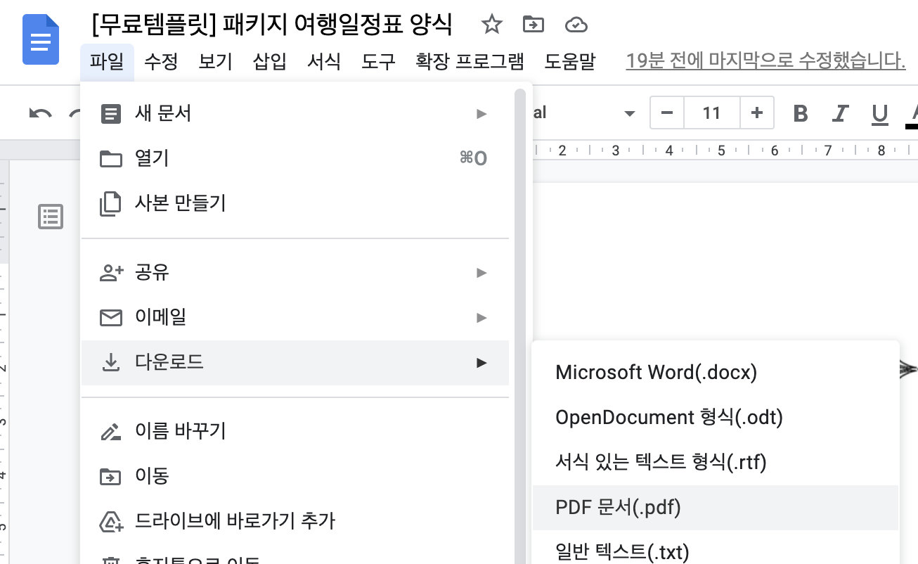 ❸ 편집 후에는 워드파일이나 pdf로 다운로드 받으실 수 있습니다. (파일 > 다운로드)