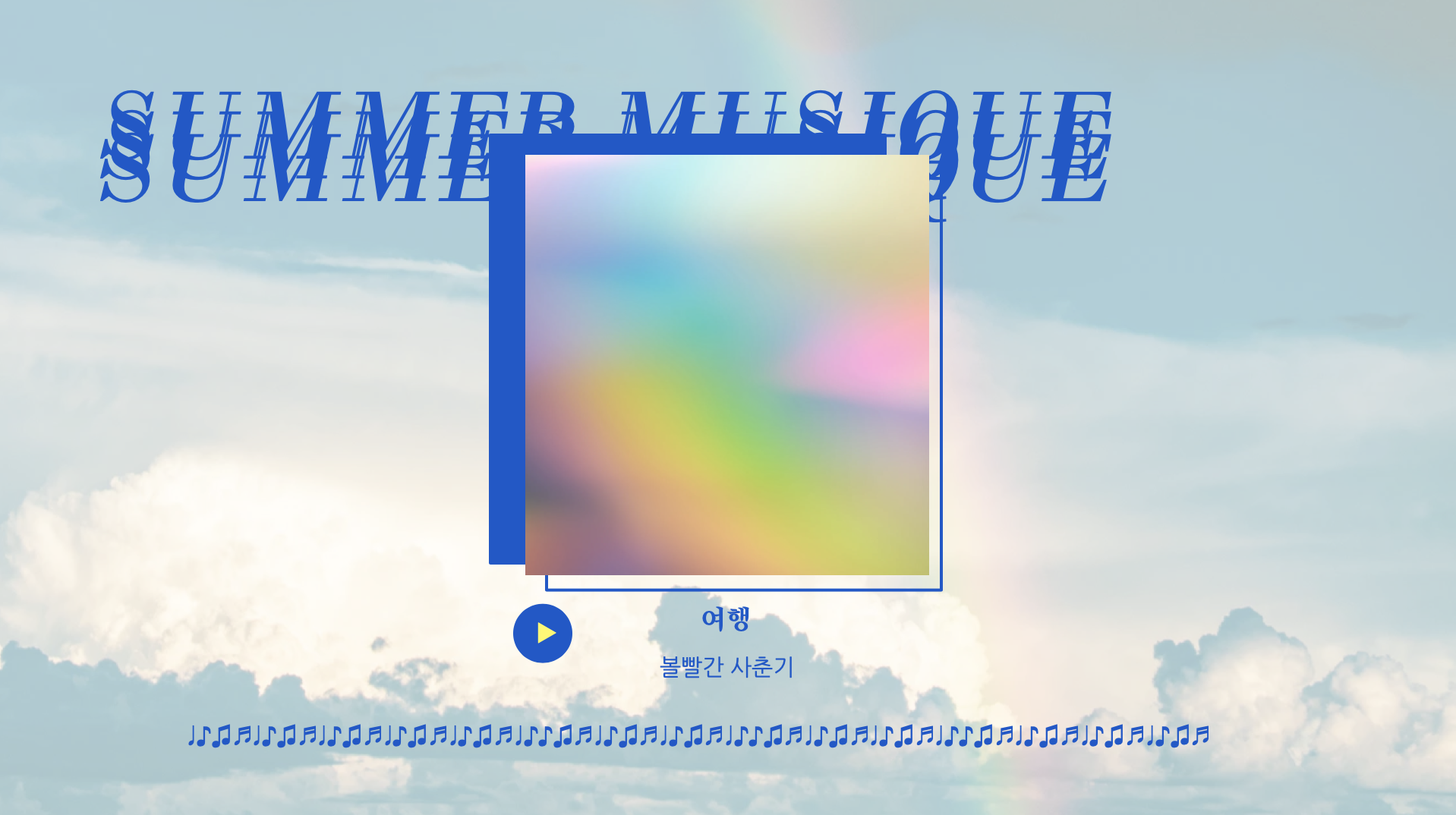 무지개빛 하늘 이미지로 시작해서 활발하고 에너제틱한 옐로컬러를 사용, 70년대 빈티지감성을 더했습니다. 발랄하고 명랑한 분위기를 내기에 좋게 디자인되었습니다. 앨범아트는 저작권 문제가 있을 수 있어 일부러 뺐는데요, PPT 제작하실 때 다시 넣으시면 좋습니다.