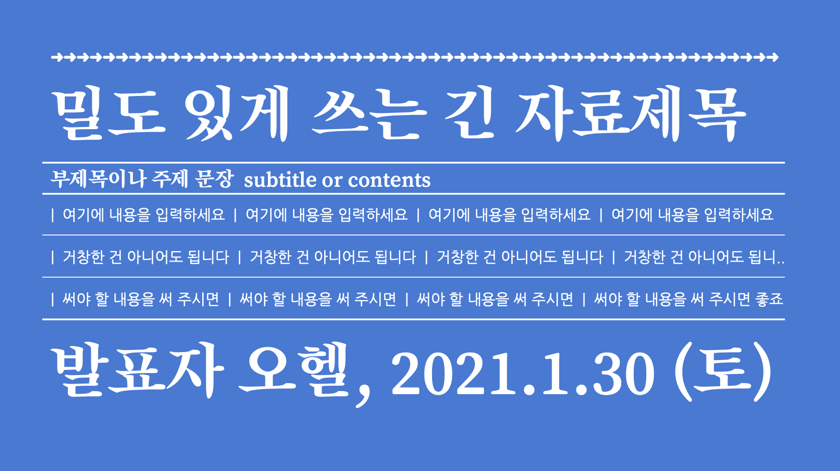 컬러는 취향에 따라 직접 바꾸셔도 좋으나, 중간에 선과 텍스트가 섞여 있기 때문에 컬러를 바꾸려다가 전체 도형의 위치가 틀어지는 등 매우 귀찮으실 수 있어서, 블루 버전으로 한 개 더 만들어 보았습니다.