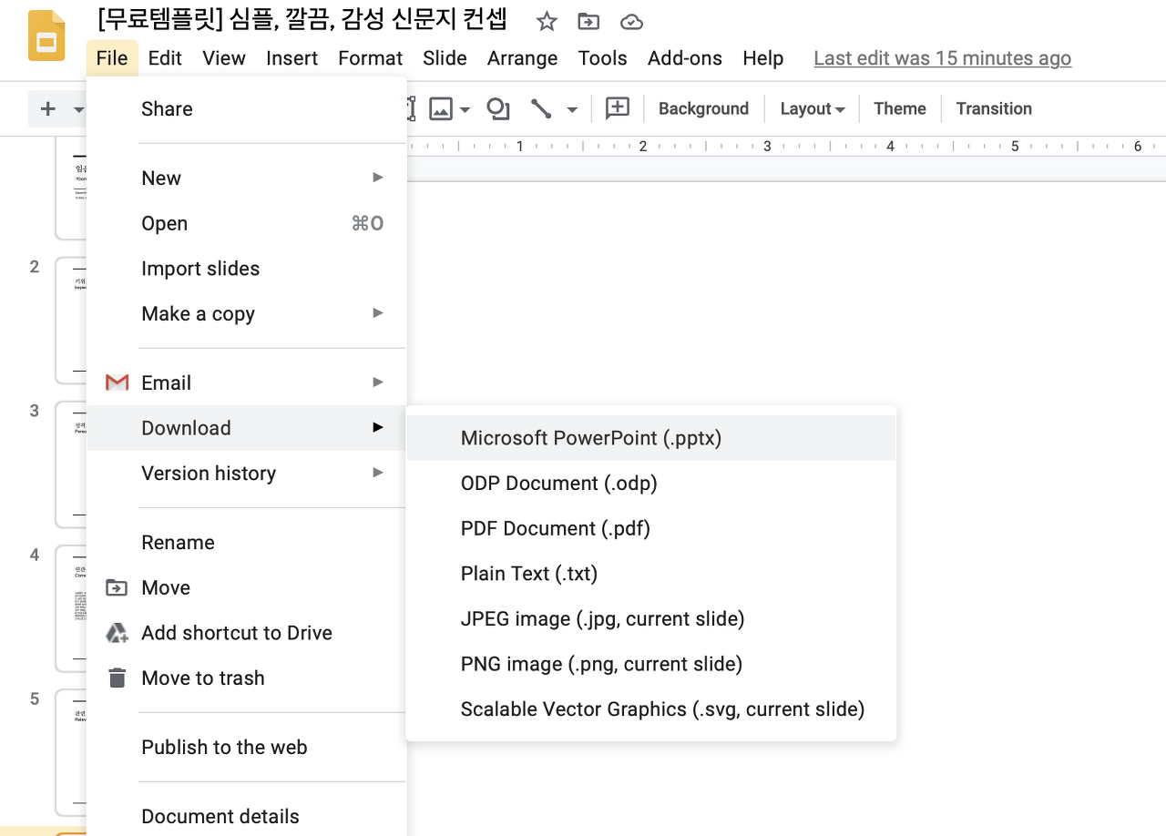 .pptx 혹은 .pdf와 같이 원하시는 파일 형식으로 다운로드 하실 수 있습니다.