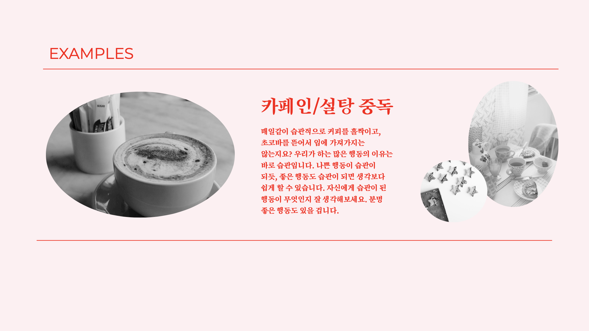 오늘은 지난 "네온퍼플 심플텍스트"에서 변형본 세 번째 시간으로, 핑크레드 버전의 색다른 구글 슬라이드(Google Slides) 무료 템플릿을 만들어 보았습니다. 글씨체도, 컨셉도 똑같지만 이번에는 요새 디자이너들이 많이 쓰는, 거의 클래식이라고 할 수 있는 연핑크와 레드 조합으로 만들어 보았어요.